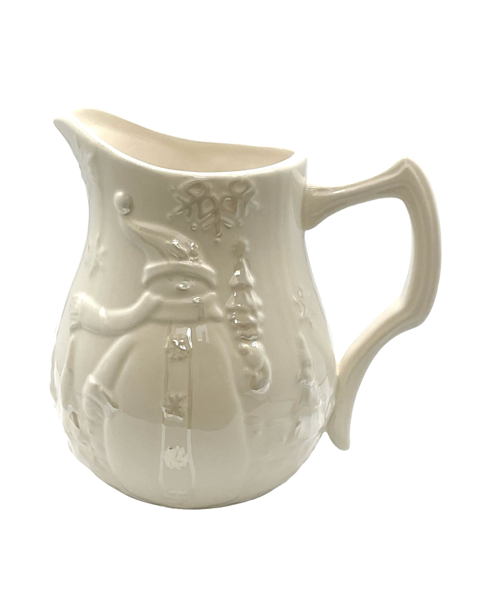 Christmas Water Pitcher with Handle Ganz Bella Casa porcelain white with opaque detailing Snowman theme
