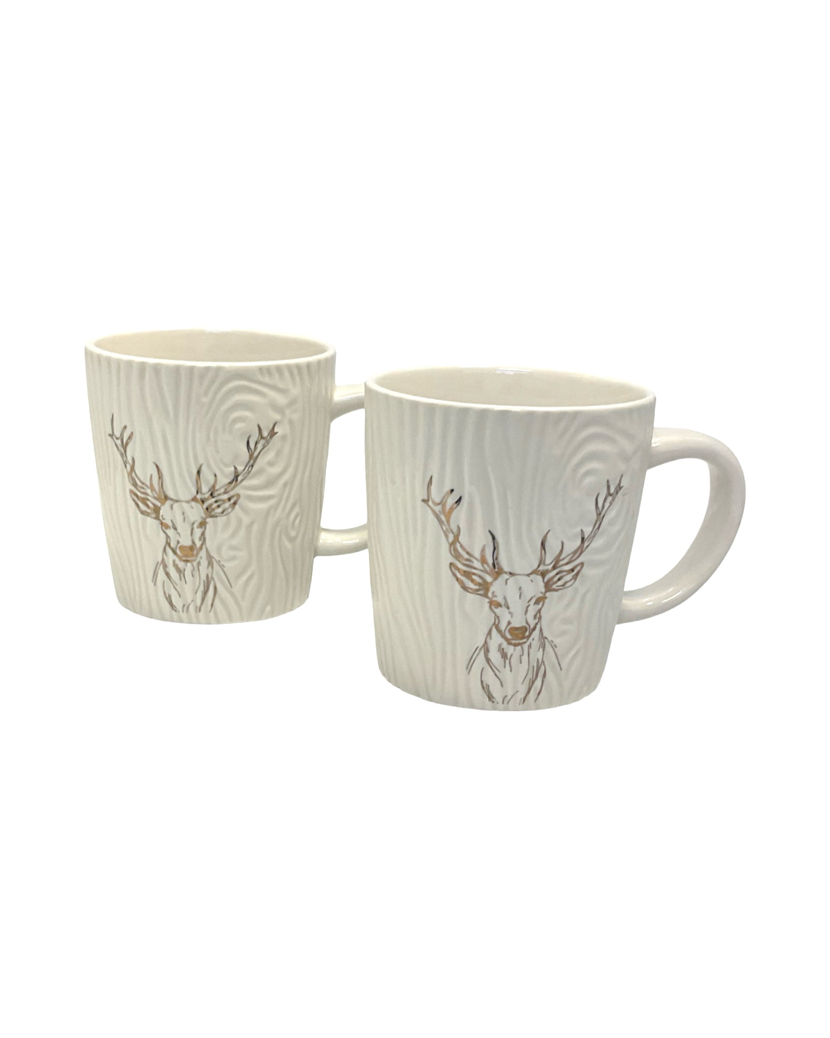 Christmas Set of 2 Mugs white with silver reindeer detailing