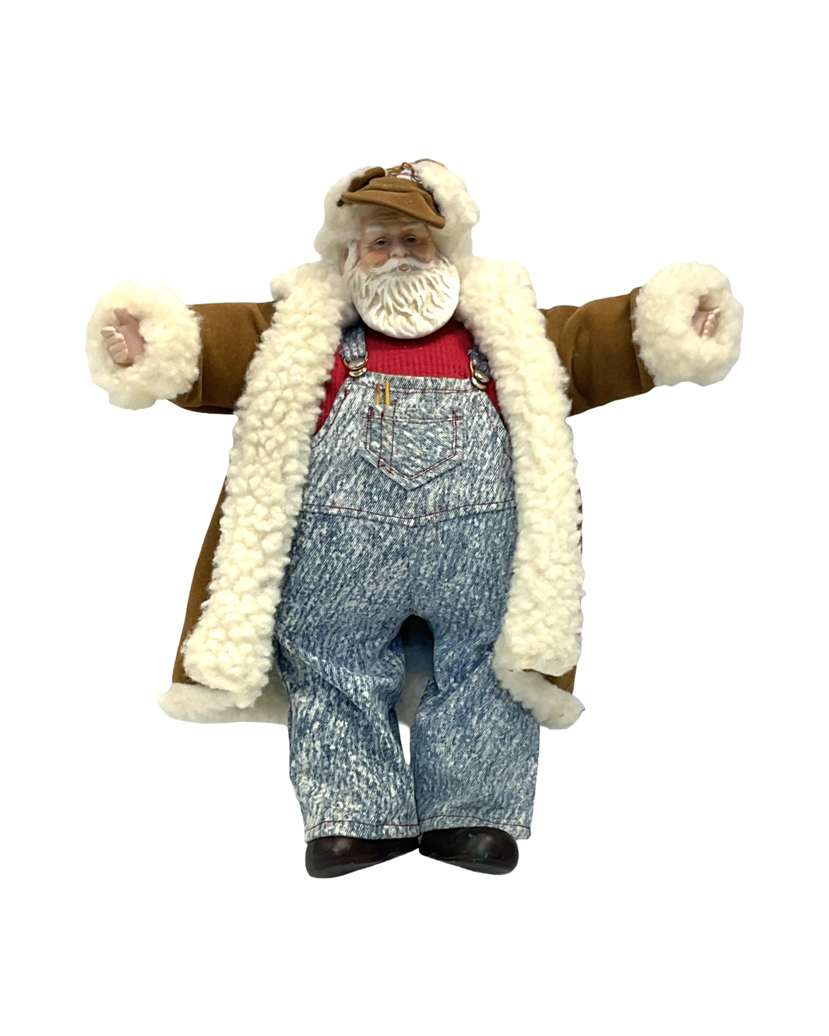 Christmas Santa in Denim Coveralls & Brown Jacket