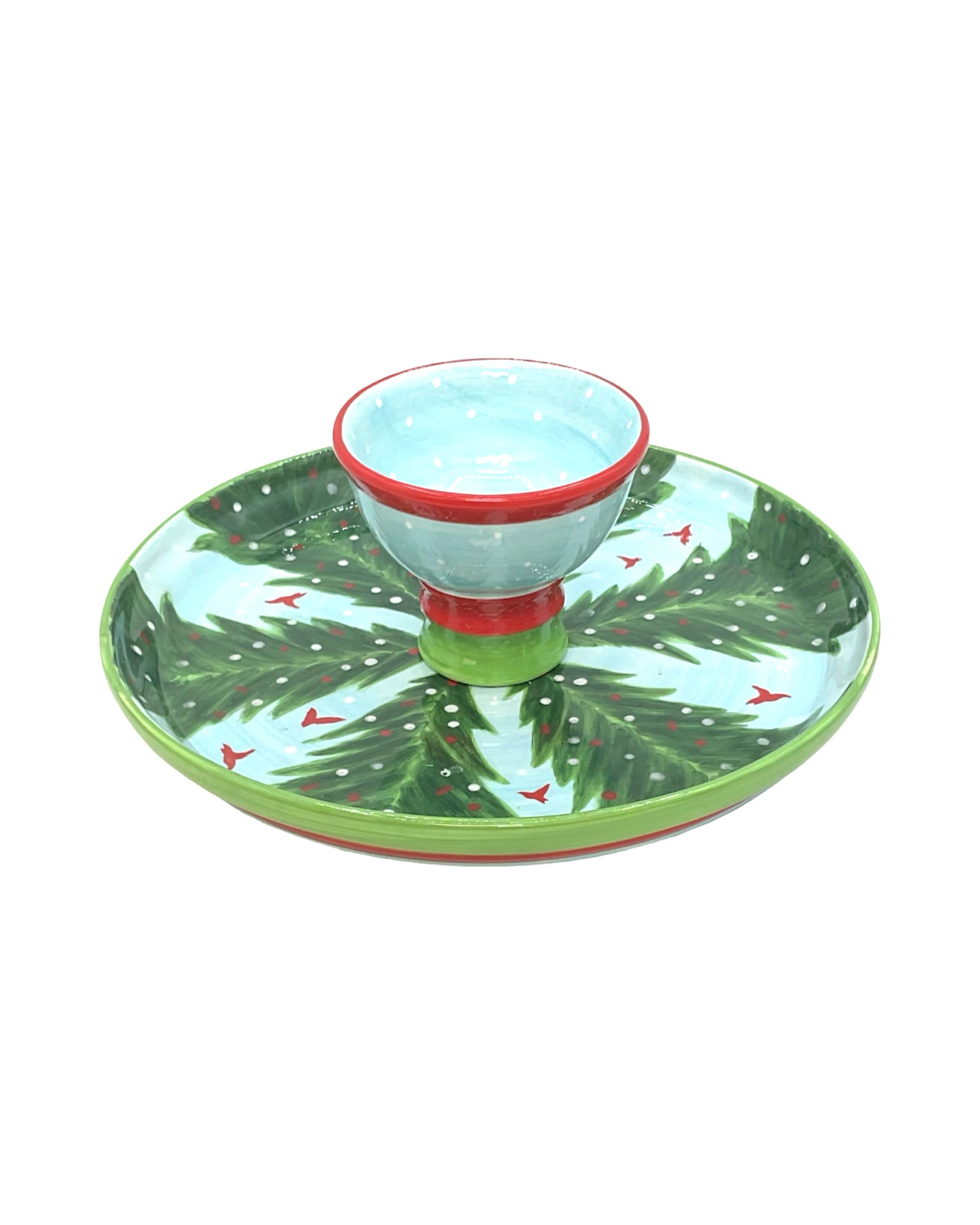 Christmas Reversible Cake Chip & Dip Plate Counter Art christmas tree & bird theme