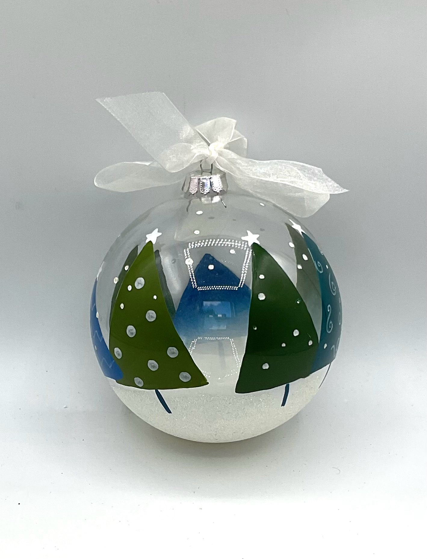 Christmas Ornament glass hand painted green & blue