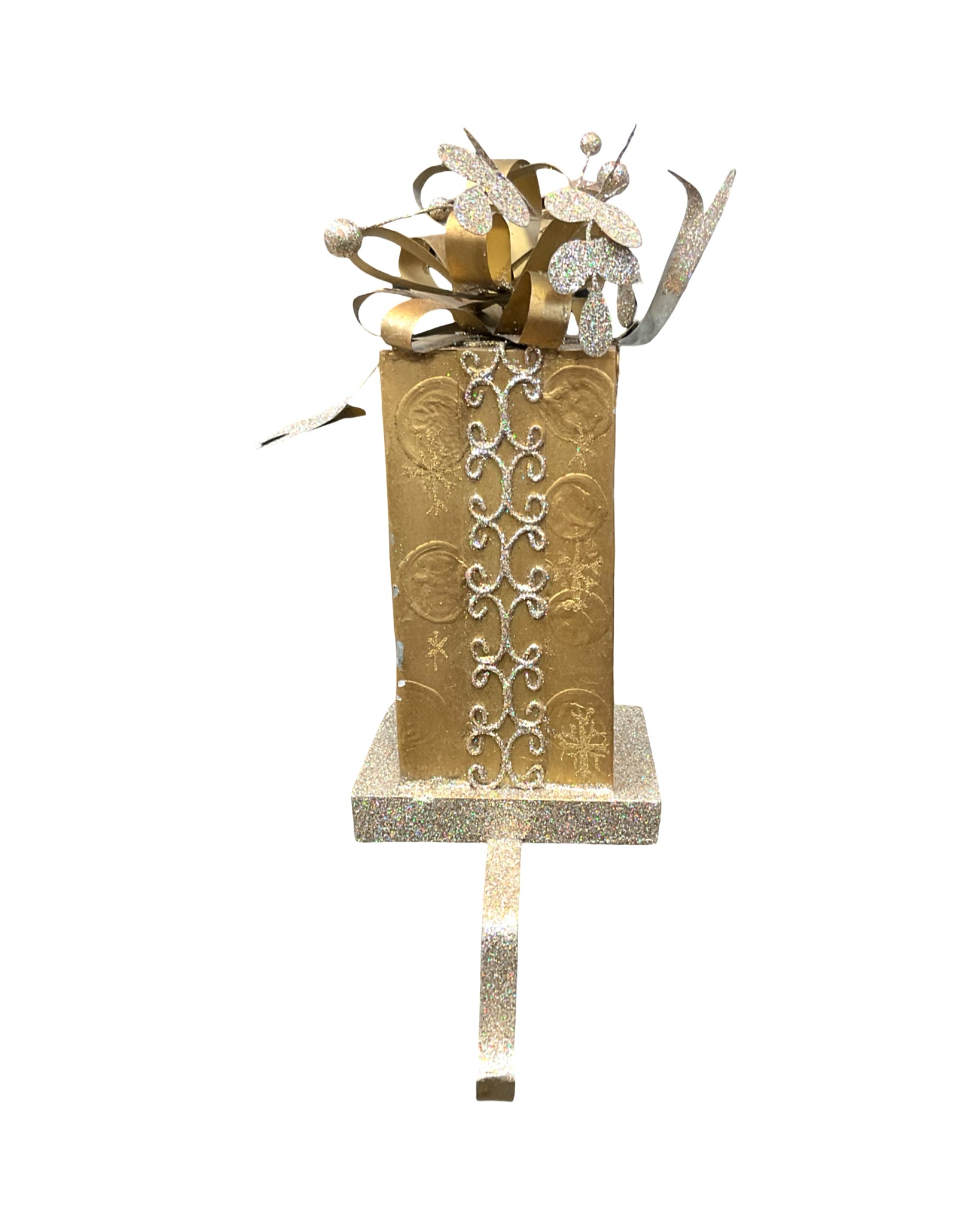 Christmas Set of 2 Stocking Holders gold tone gift boxes