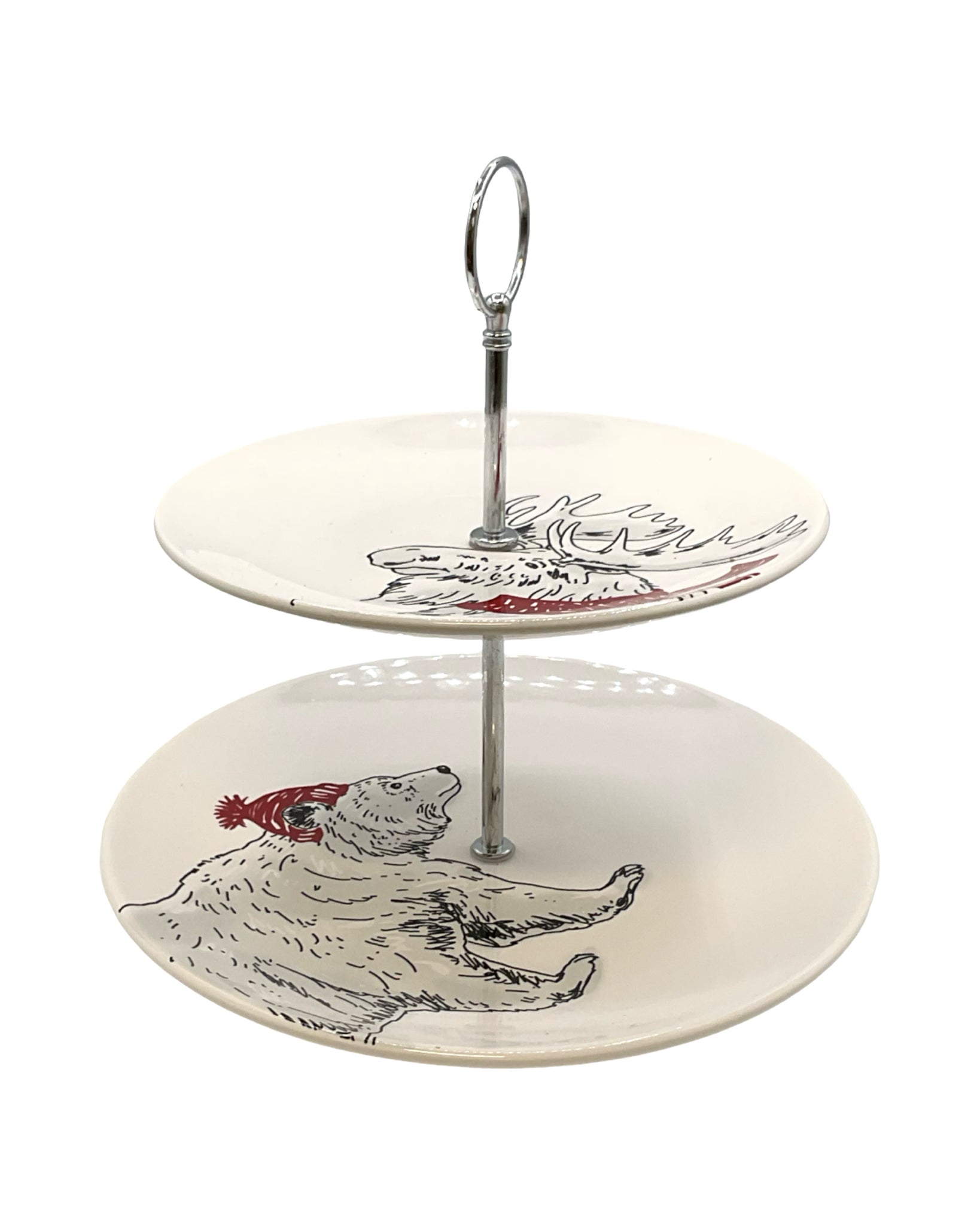 Christmas 5 Piece Dessert Set 1 two tier sweet stand 4 dishes Bear Moose & Deer Theme