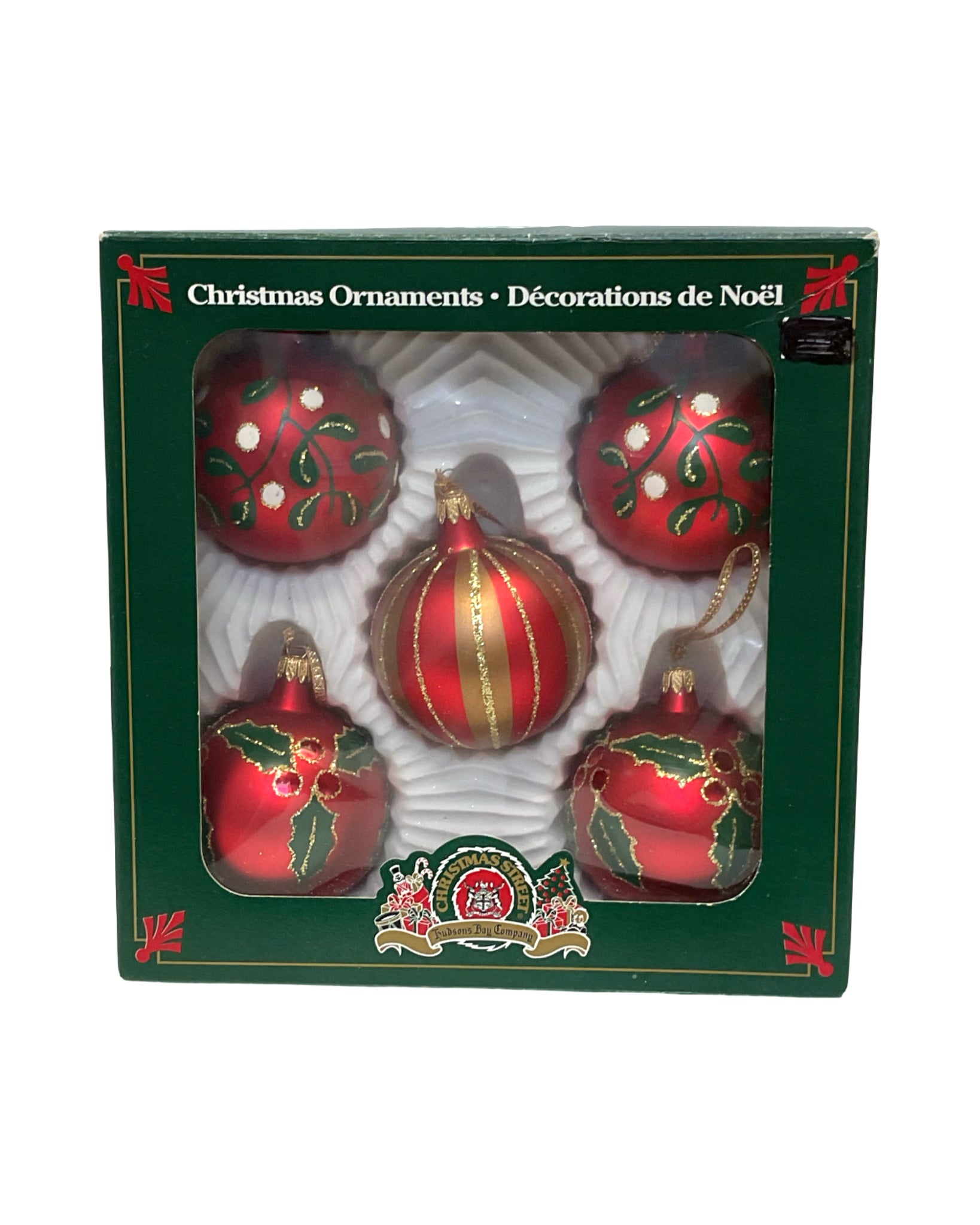 Christmas Set of 5 Ornaments Hudson Bay Company glass red