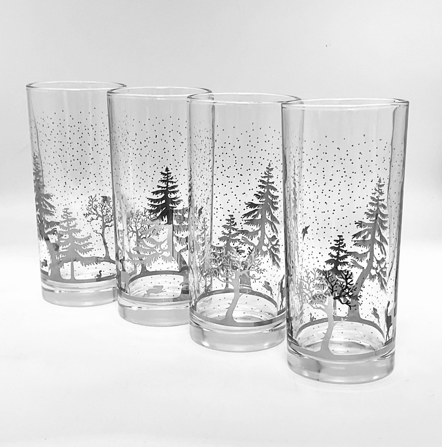 Christmas Set of 4 Tumblers silver overlay winter scene