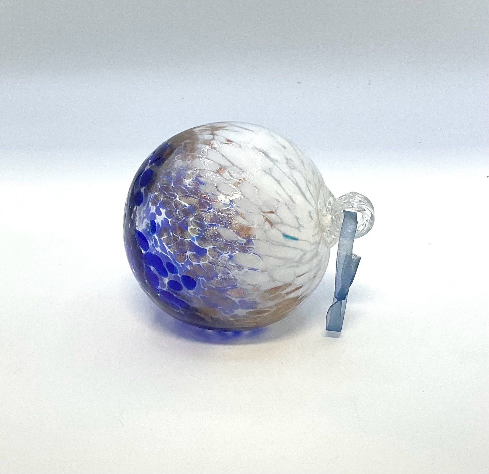 Christmas Ornament glass ball hand-blown clear cobalt blue & white with gold flecks