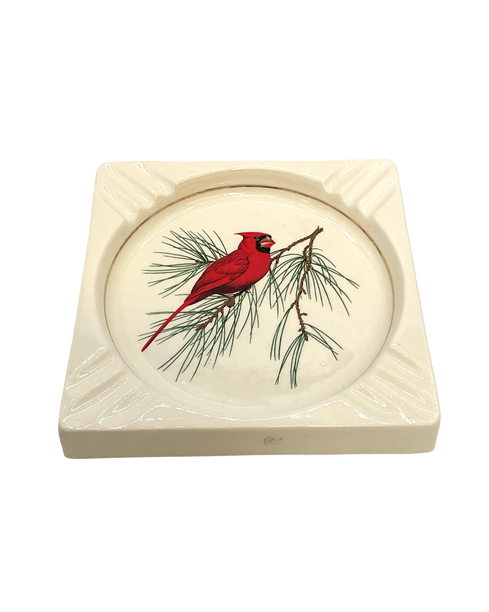 Christmas Vintage Ashtray Salem square Cardinal on Branch