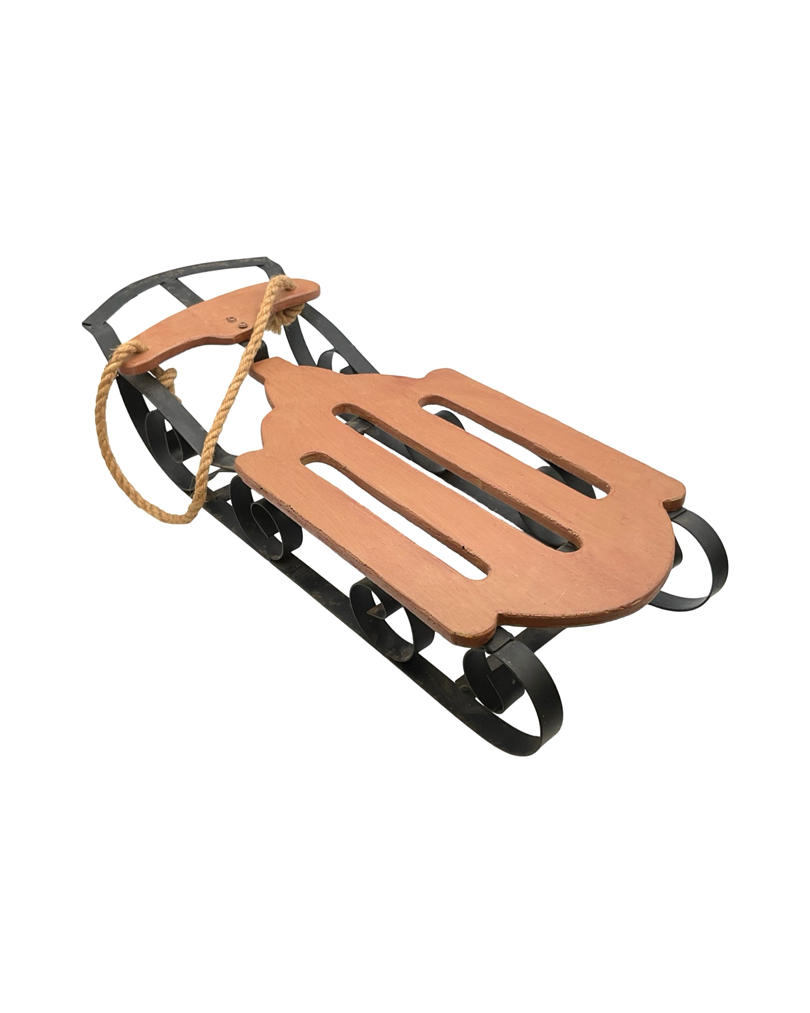 Christmas Wooden Sleigh with Metal Runners & Rope Handle