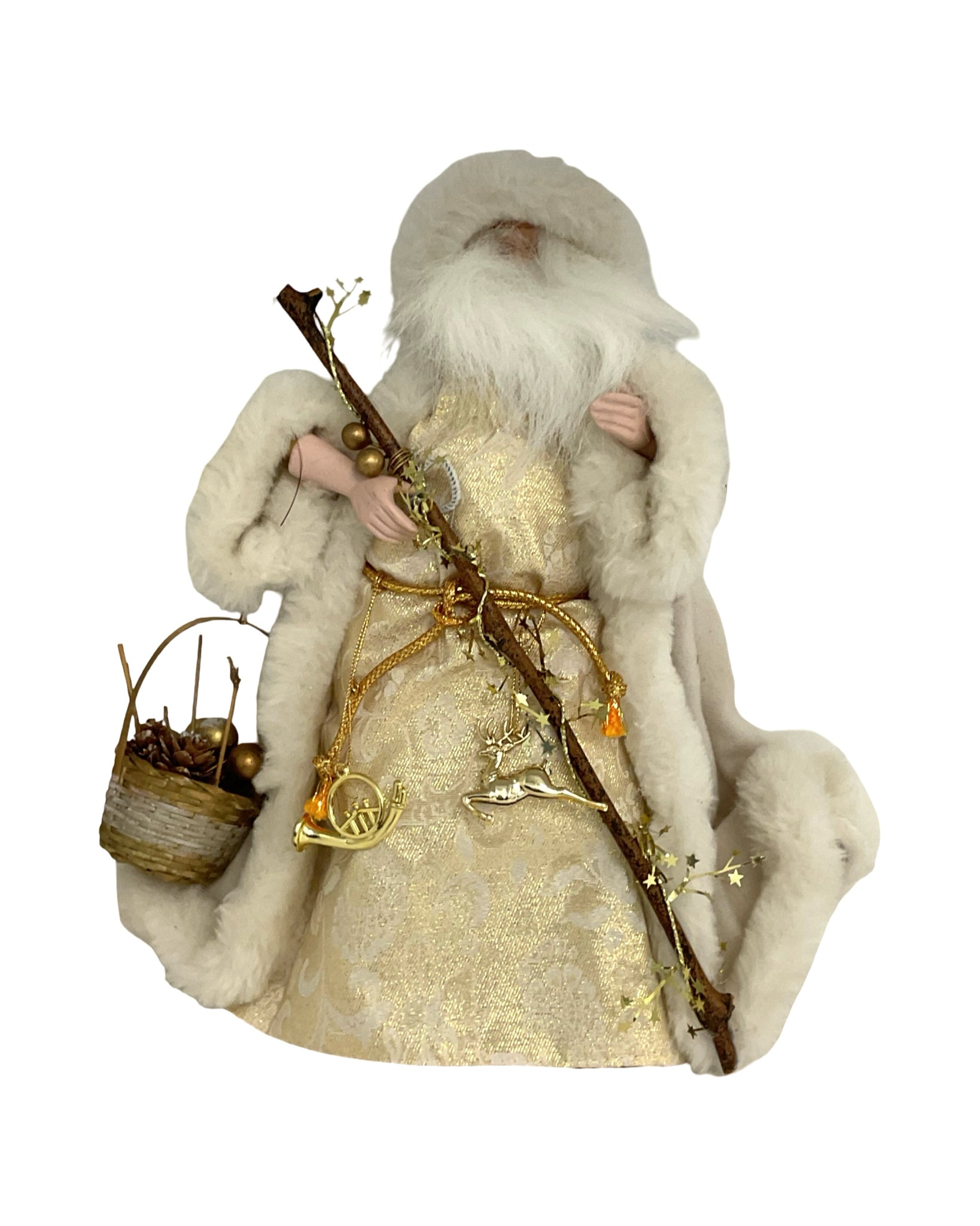 Christmas Tree Topper Santa with Basket & Staff gold & ivory tone