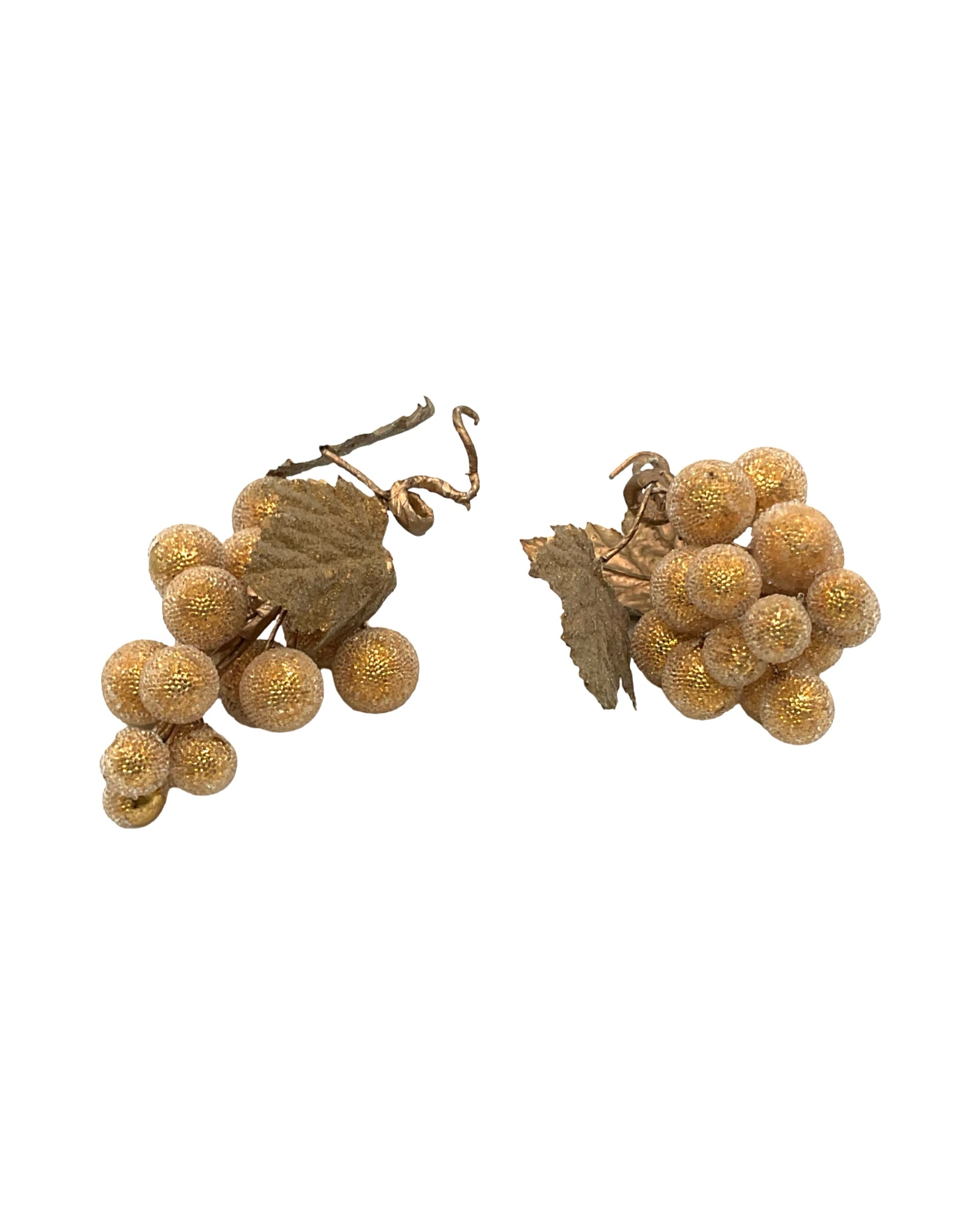 Christmas Ornaments Set of 2 Frosted Grapes gold tone