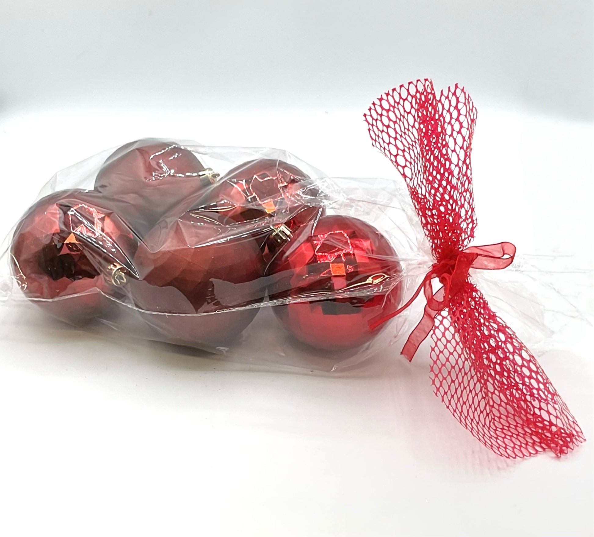 Christmas Set of 5 Ornaments round 3 red 2 wine