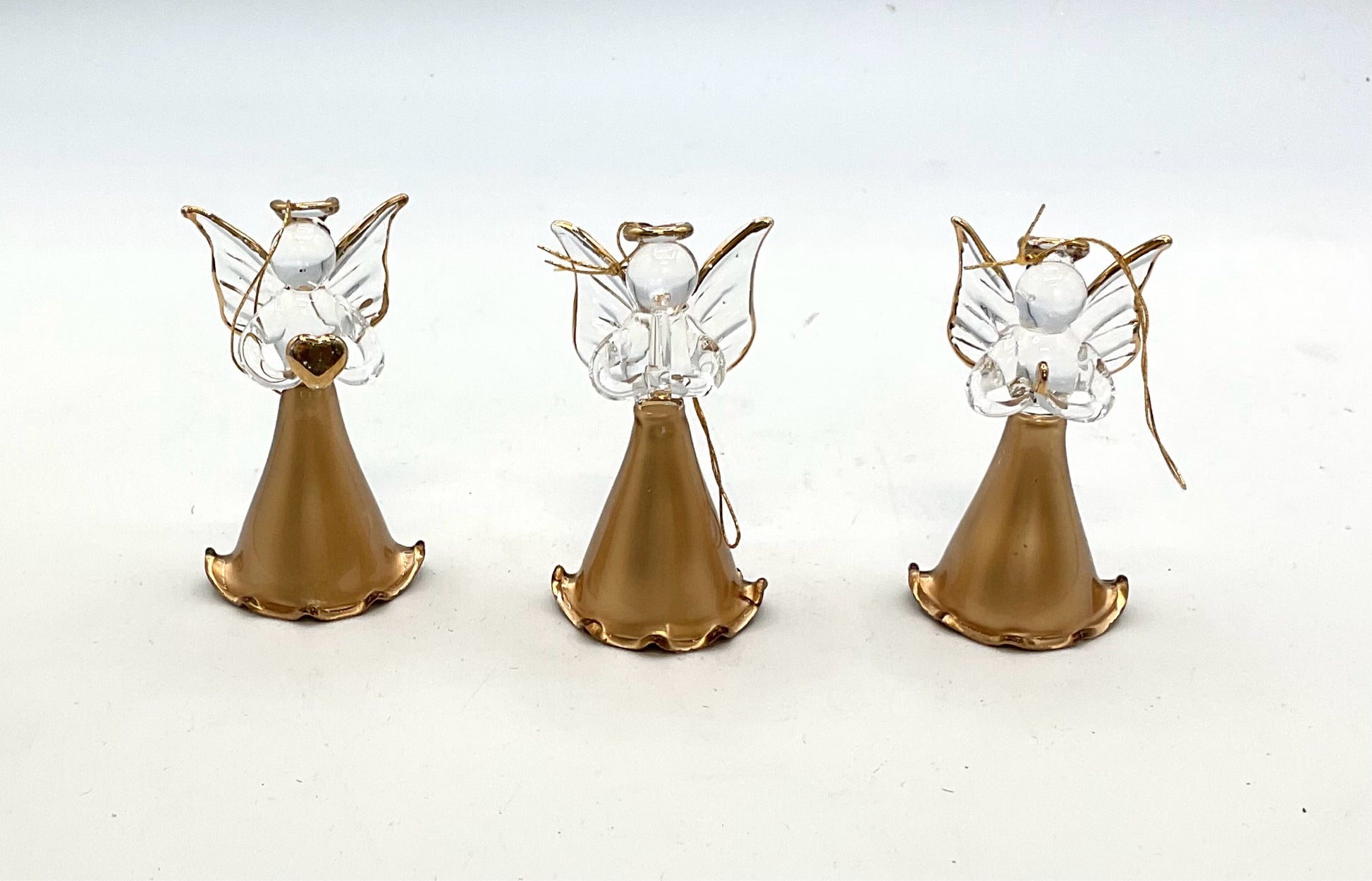 Christmas Set of 3 Angle Ornaments glass hand blown clear & gold