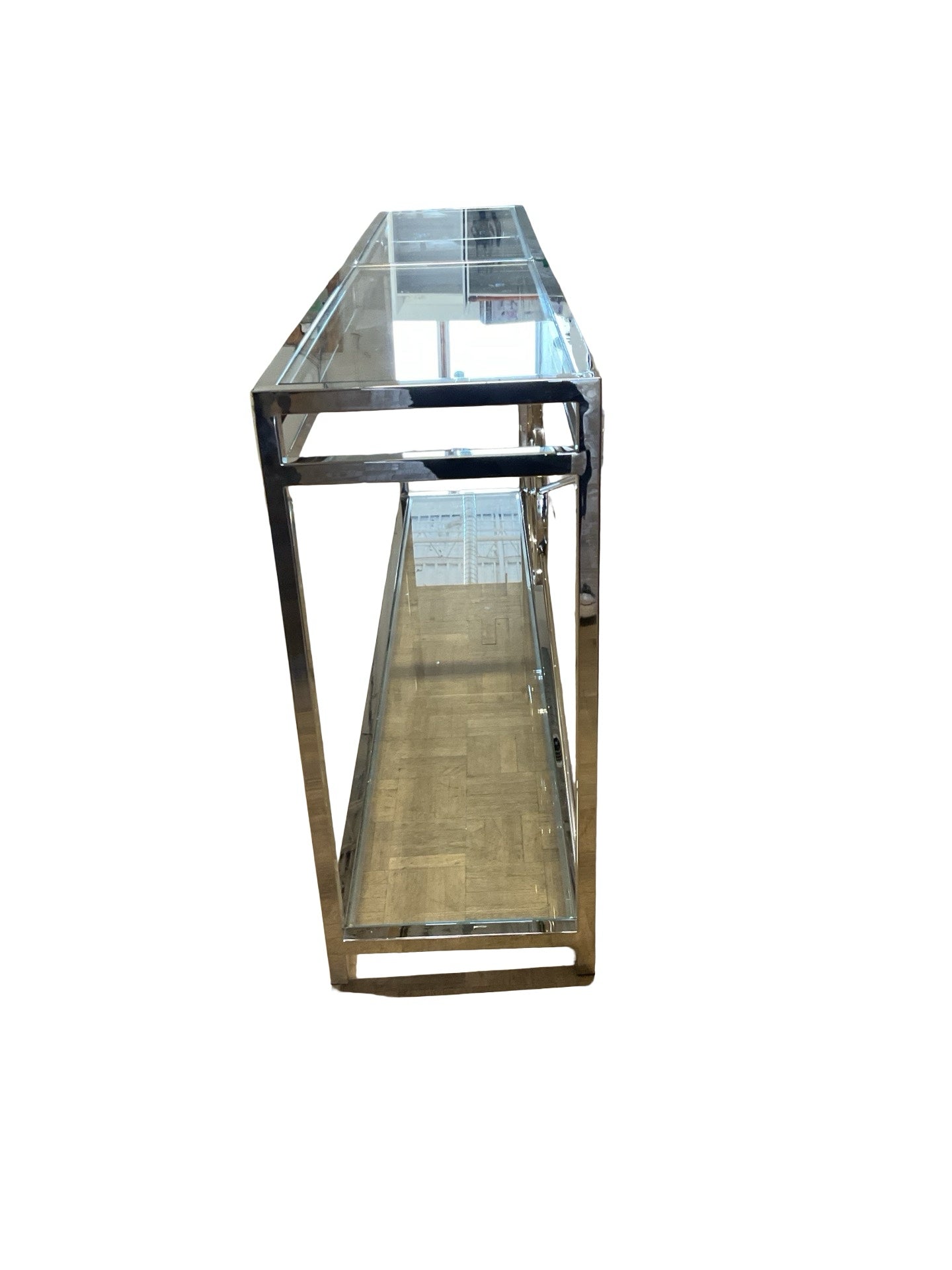 Console 2 tier polished chrome frame with glass shelves 68"W x 14"D x 32"H