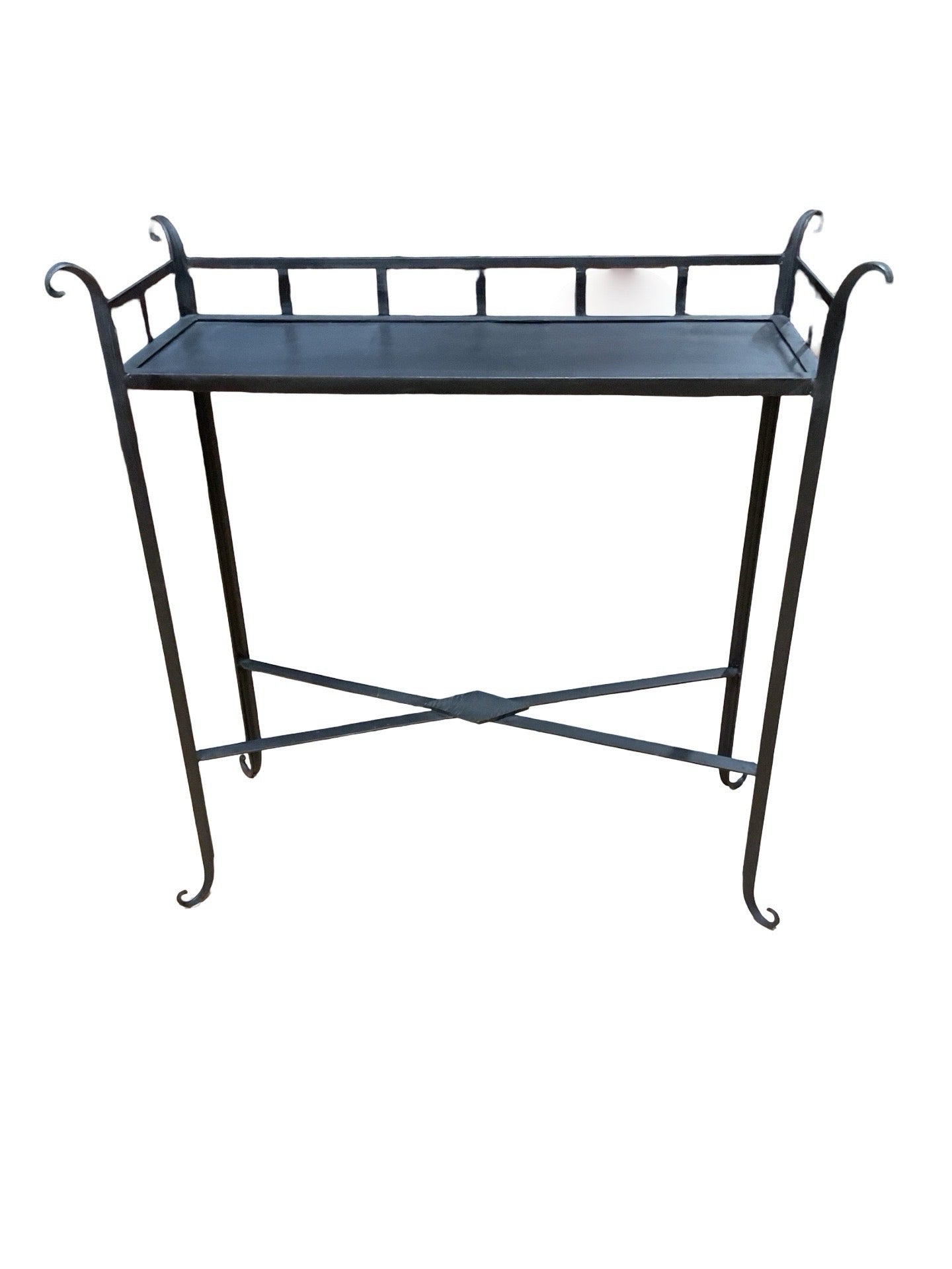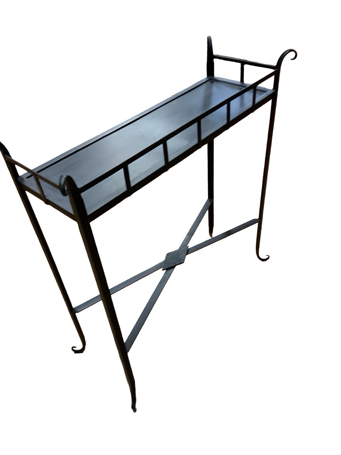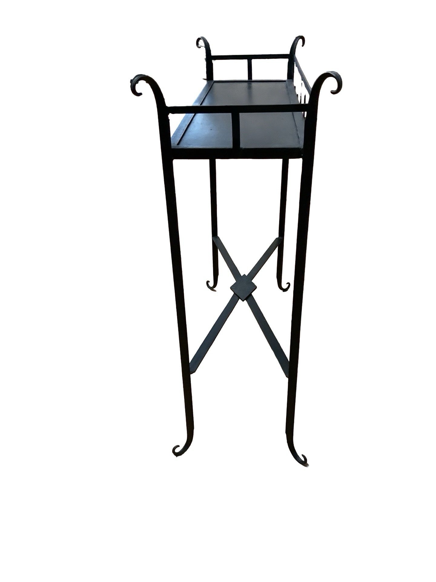 Console black metal with X base 33"W x 13"D x 35"H