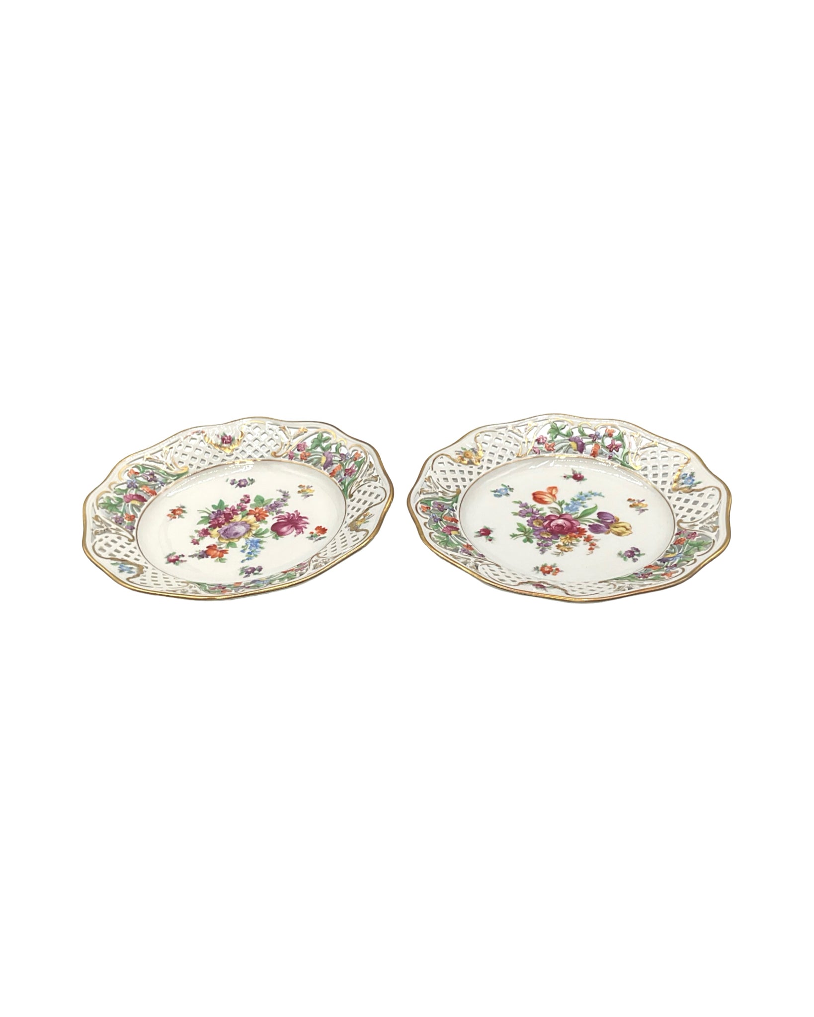 Set of 2 Plates Schumann Bavaria Dresden Line porcelain pierced white & floral with gold detailing