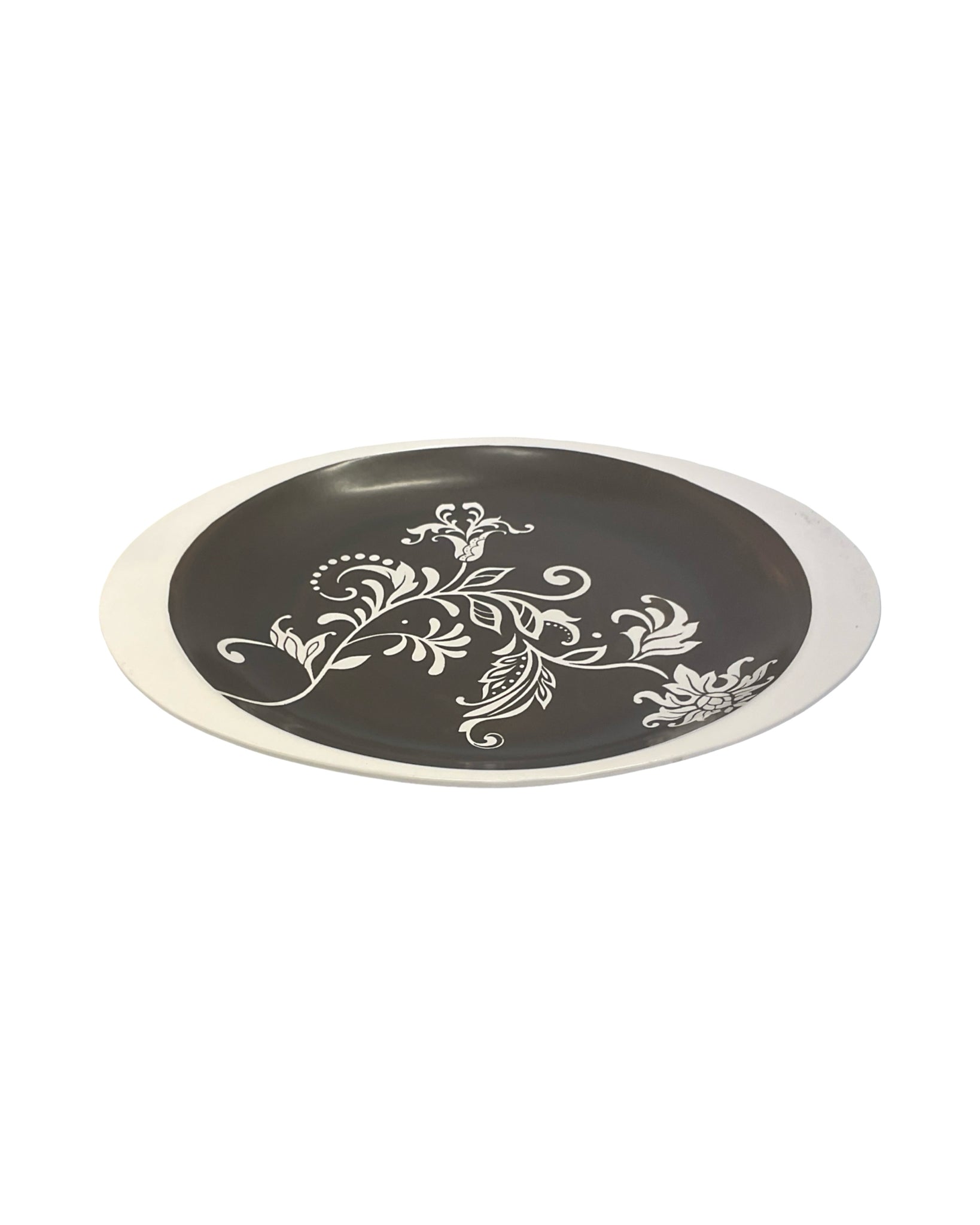Serving Platter Earth Collection oval white & brown with floral detailing