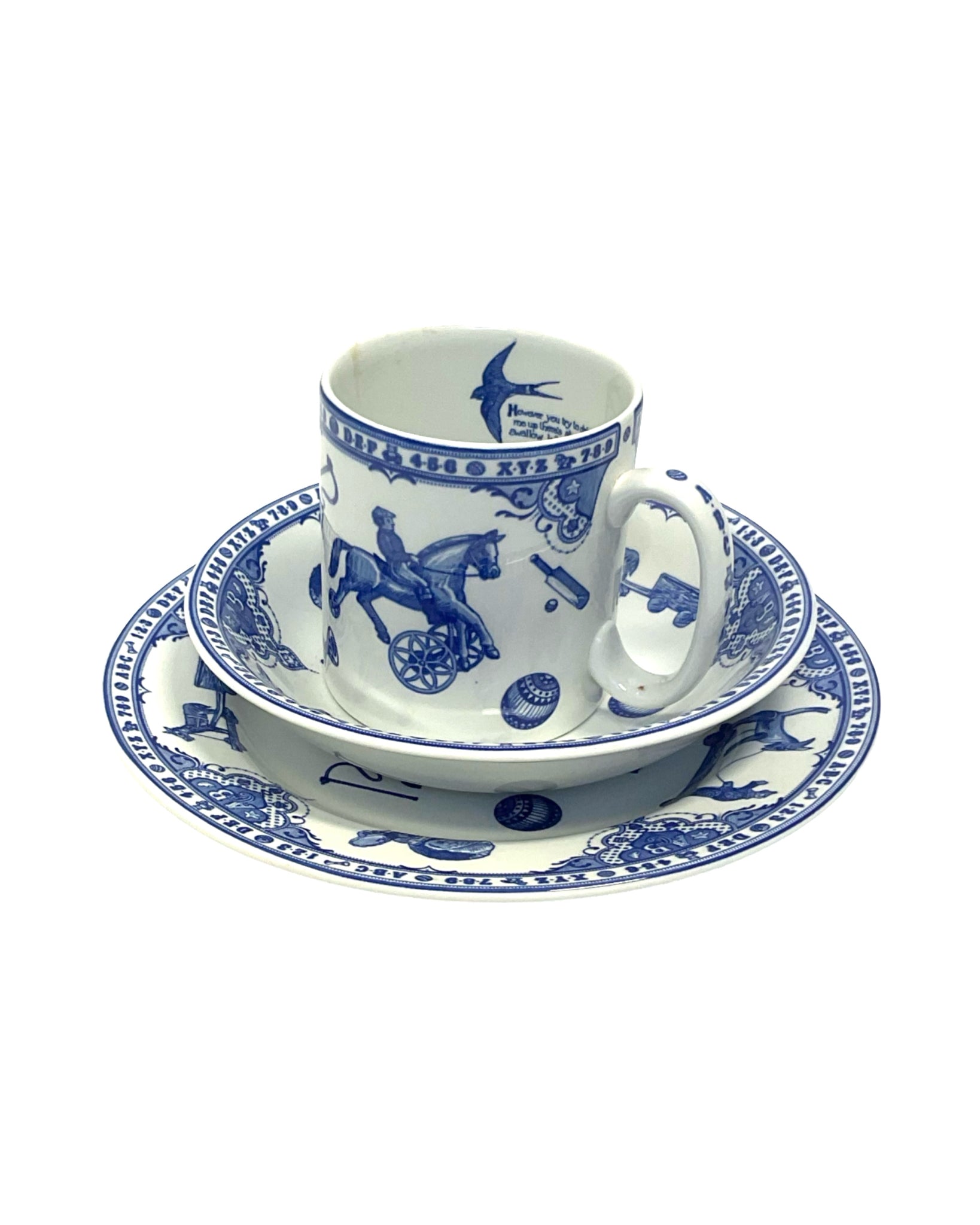 3 Piece Breakfast Set Spode Edwardian Childhood 1 plate 1 bowl 1 mug white & blue