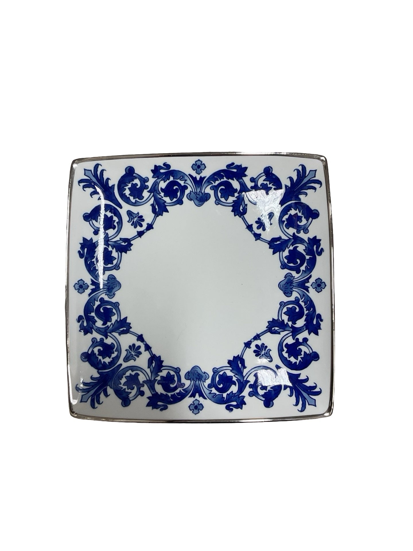 Set of 5 Dinner Plates Bombay square white & blue with silver boarder