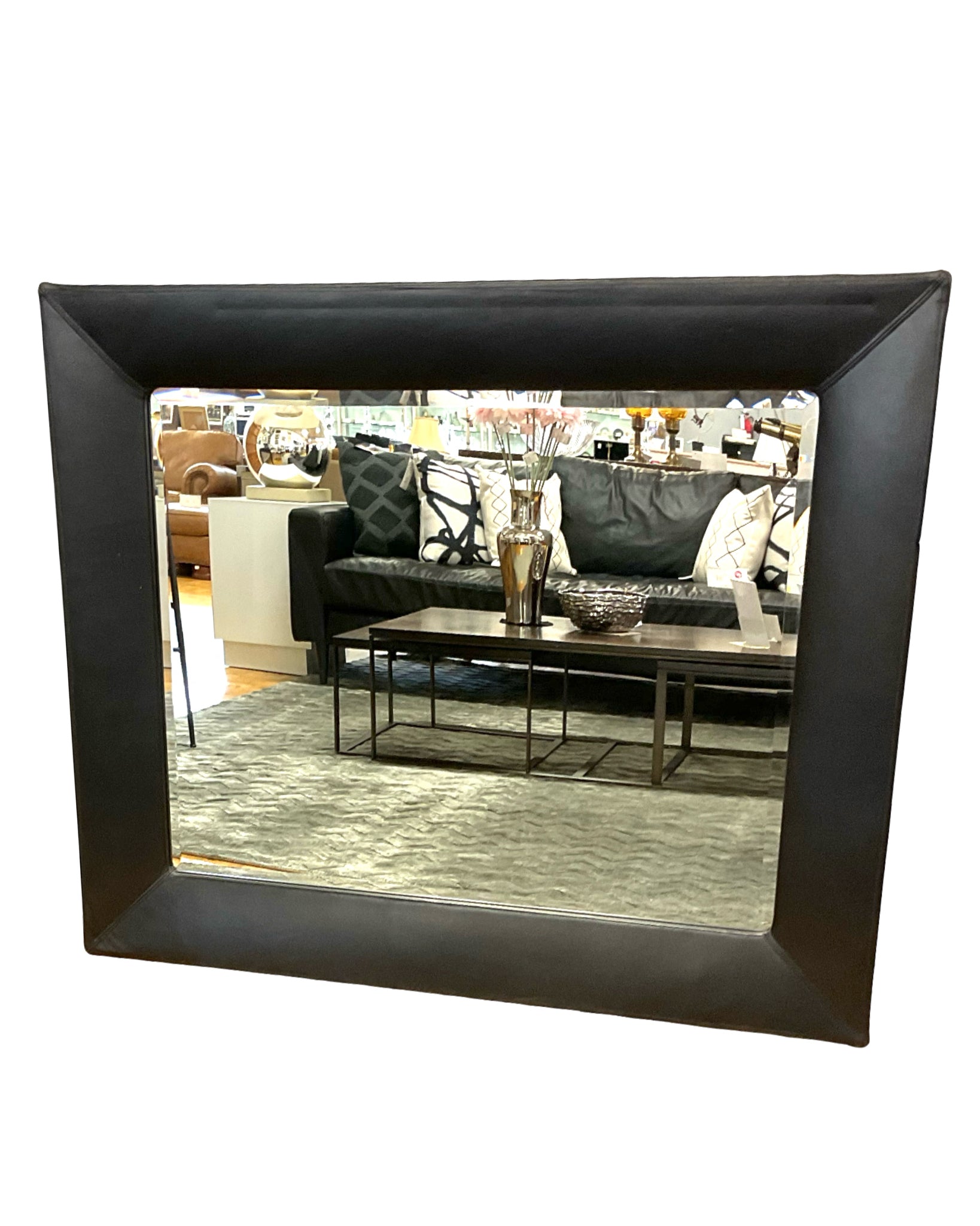 Mirror rectangle black leather wrap frame 51"W x 43"H