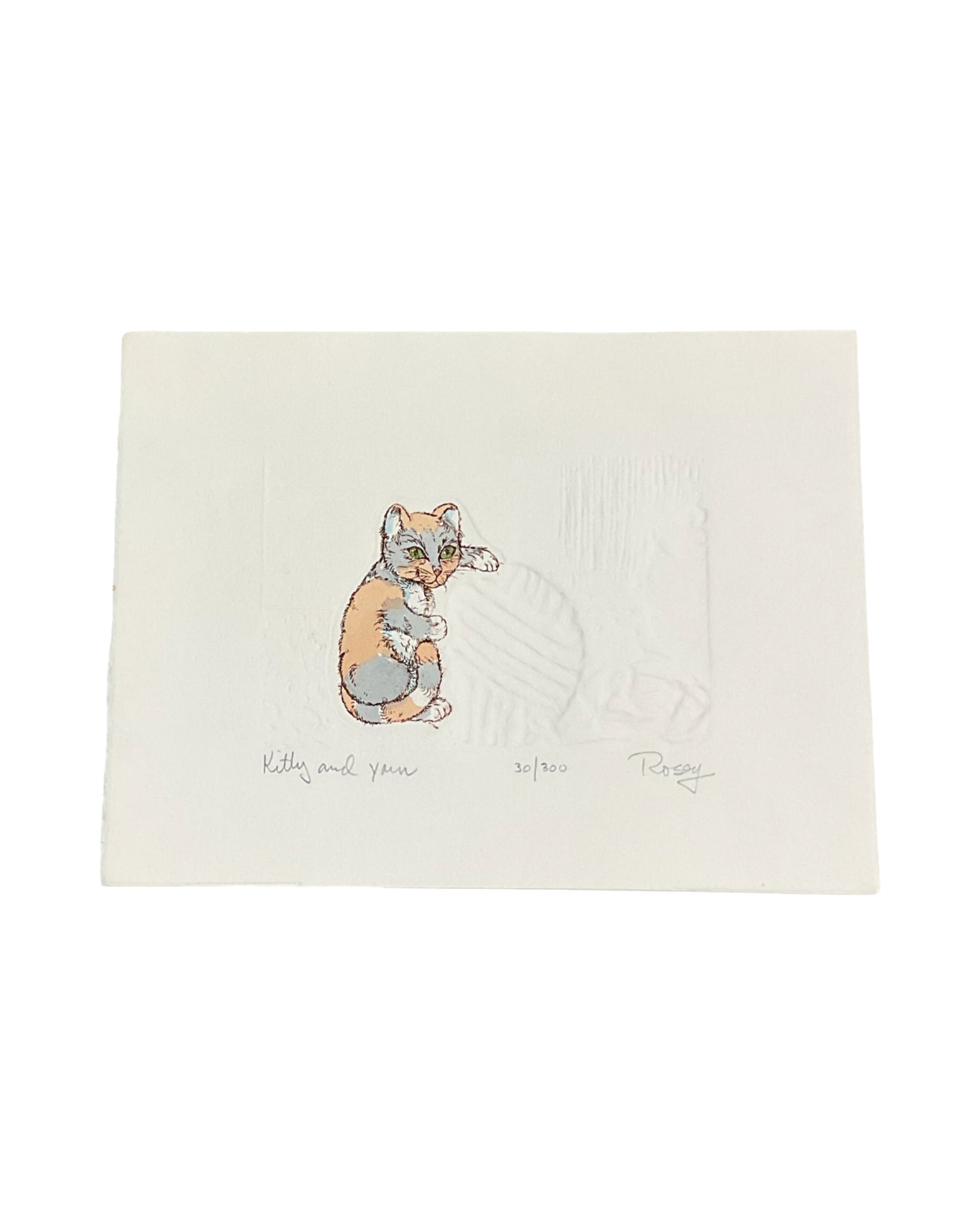 Artwork Signed & Numbered Serigraph Kitty and Yarn 10"W x 7.5"H
