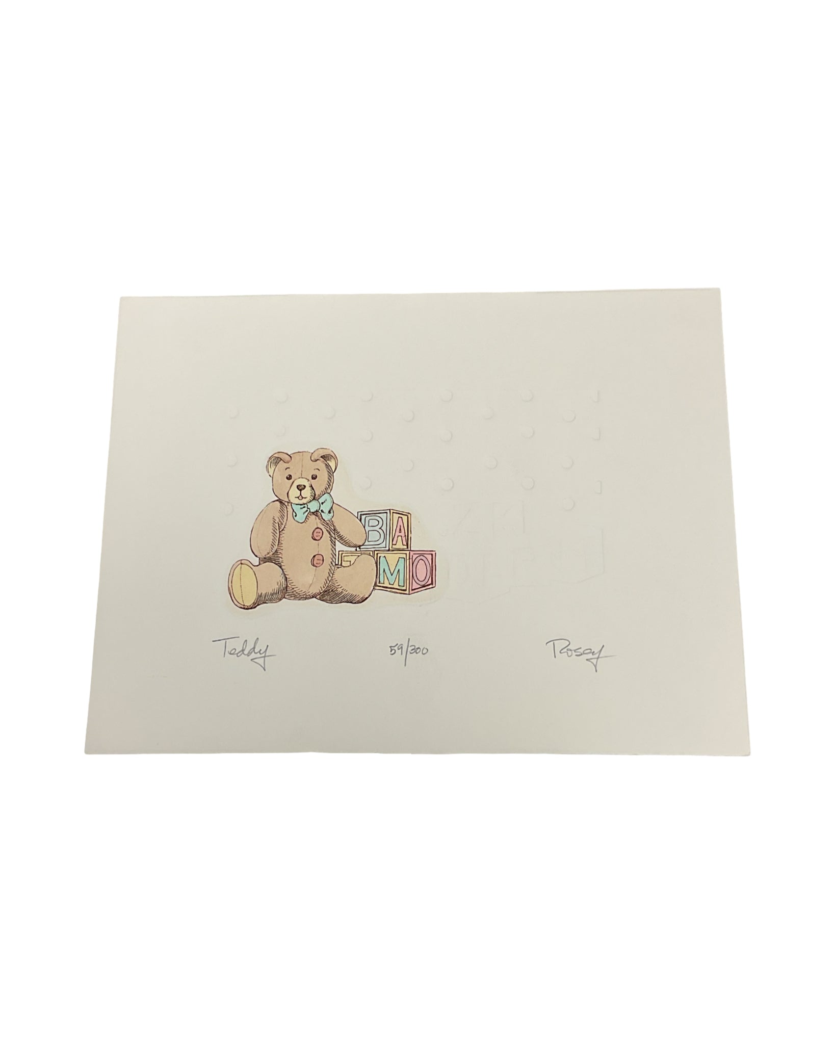 Artwork Signed & Numbered Serigraph Teddy 9.5"W x 7.5"H