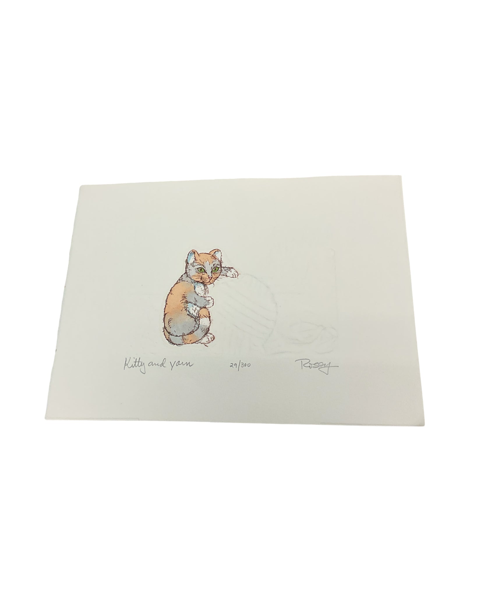 Artwork Signed & Numbered Serigraph Kitty and Yarn 10"W x 7.5"H
