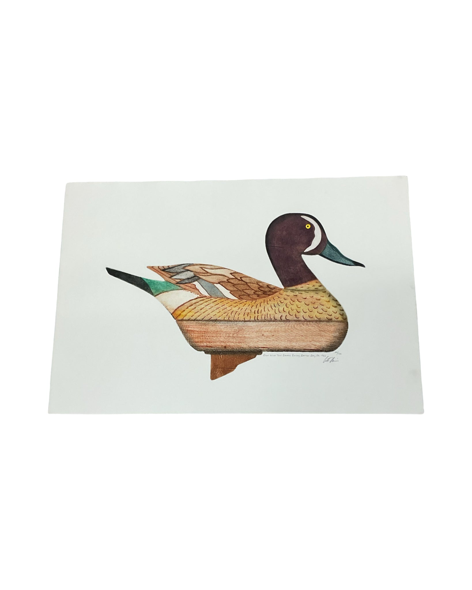 Artwork Signed & Numbered Serigraph Blue Wing Teal Drake Decoy 22"W x 15"H