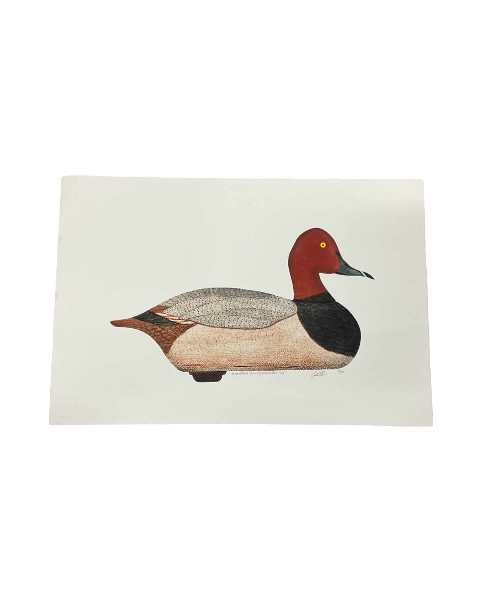 Artwork Signed & Numbered Serigraph Redhead Drake Decoy 22"W x 15"H