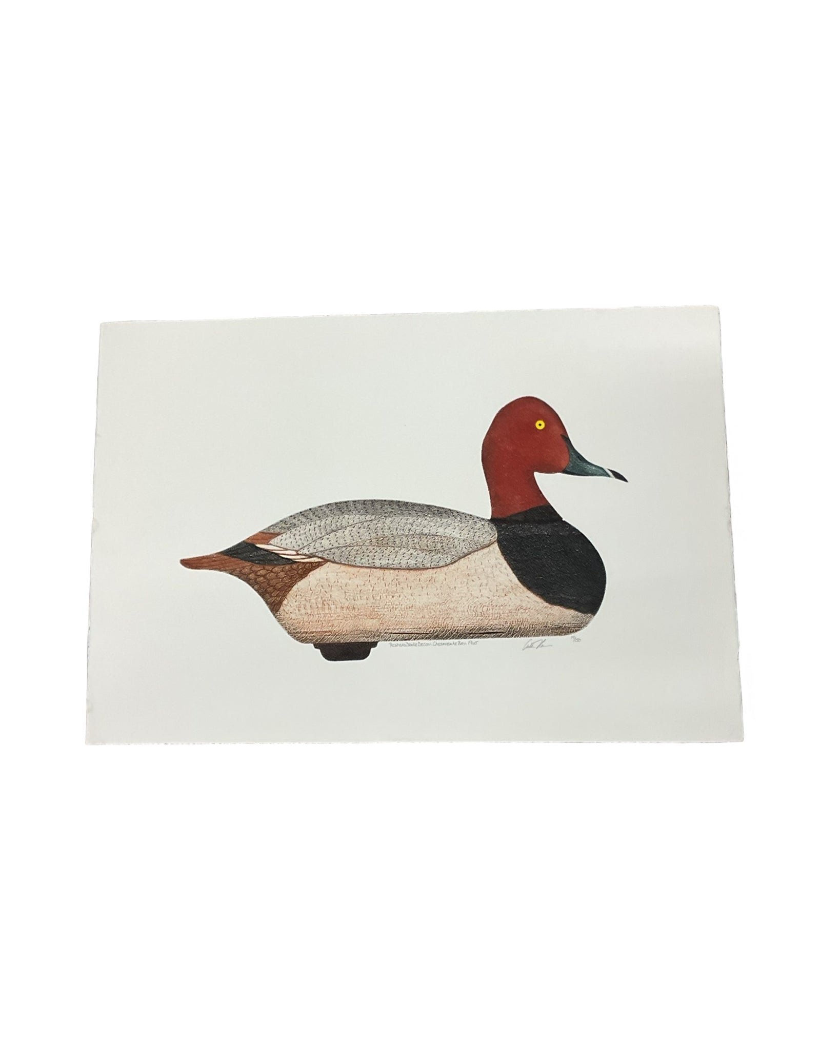 Artwork Signed & Numbered Serigraph Redhead Drake Decoy 22"W x 15"H