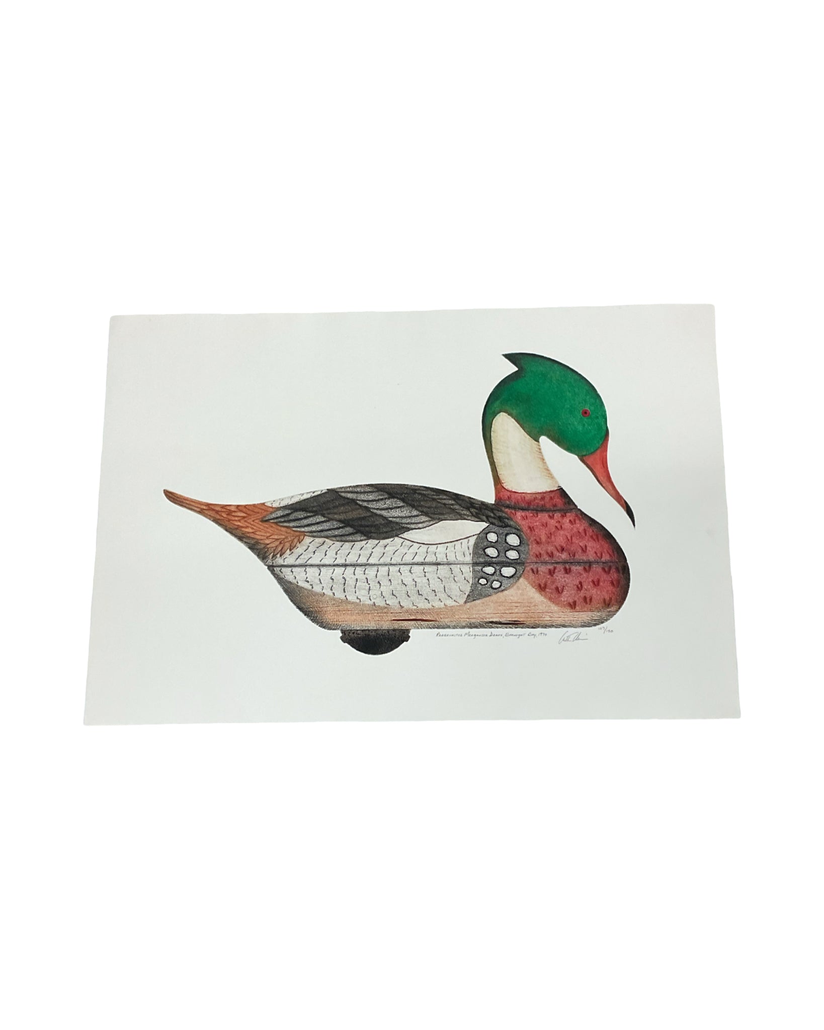 Artwork Signed & Numbered Serigraph Redbreasted Merganser Drake Decoy 22"W x 15"H