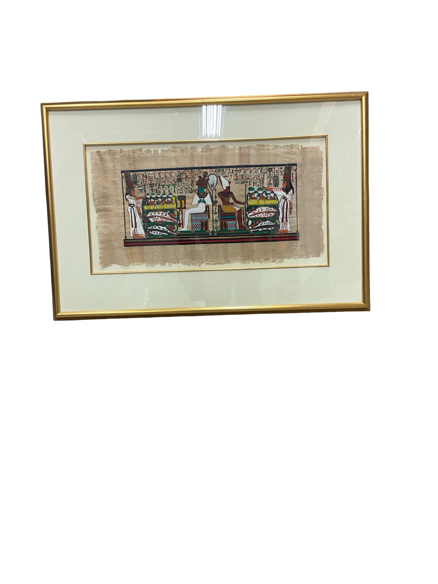 Artwork Egyptian Scene hand painted on Paprus 31"W x 21"h