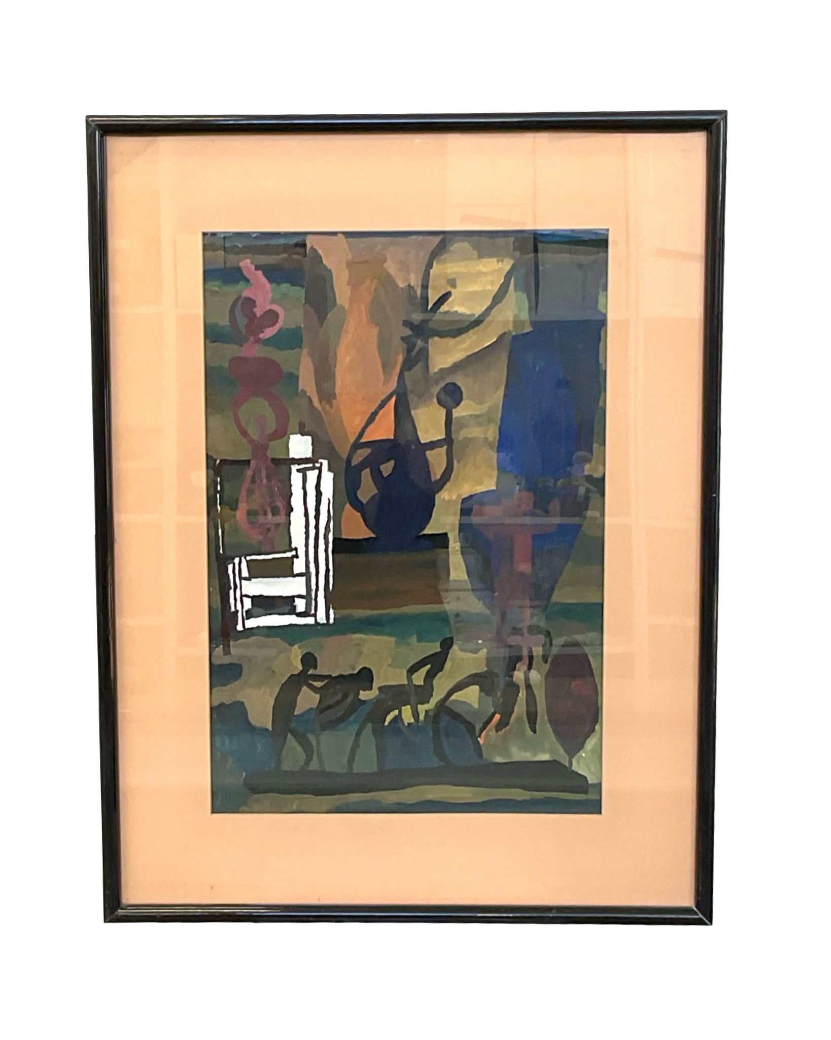 Artwork acrylic abstract multi coloured in black frame 24"W x 30"H