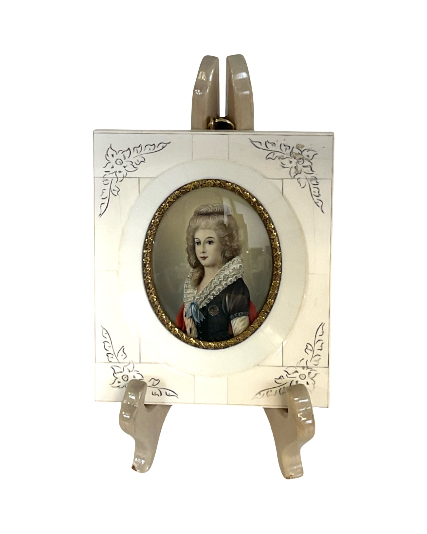 Set 2 Miniature Portraits hand painted 5"W x 5.5H