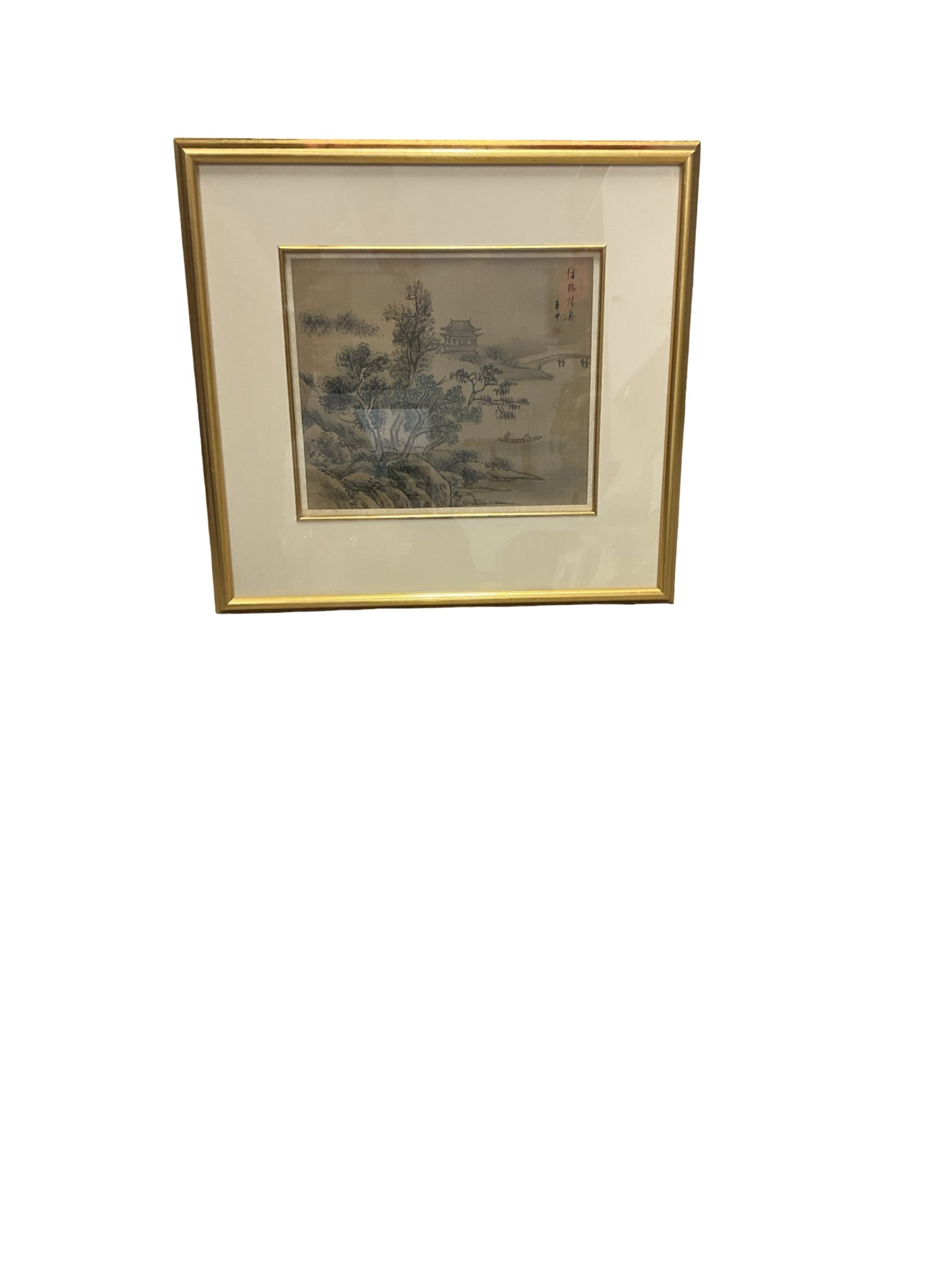 Vintage Asian Silk Fabric frames in gold frame