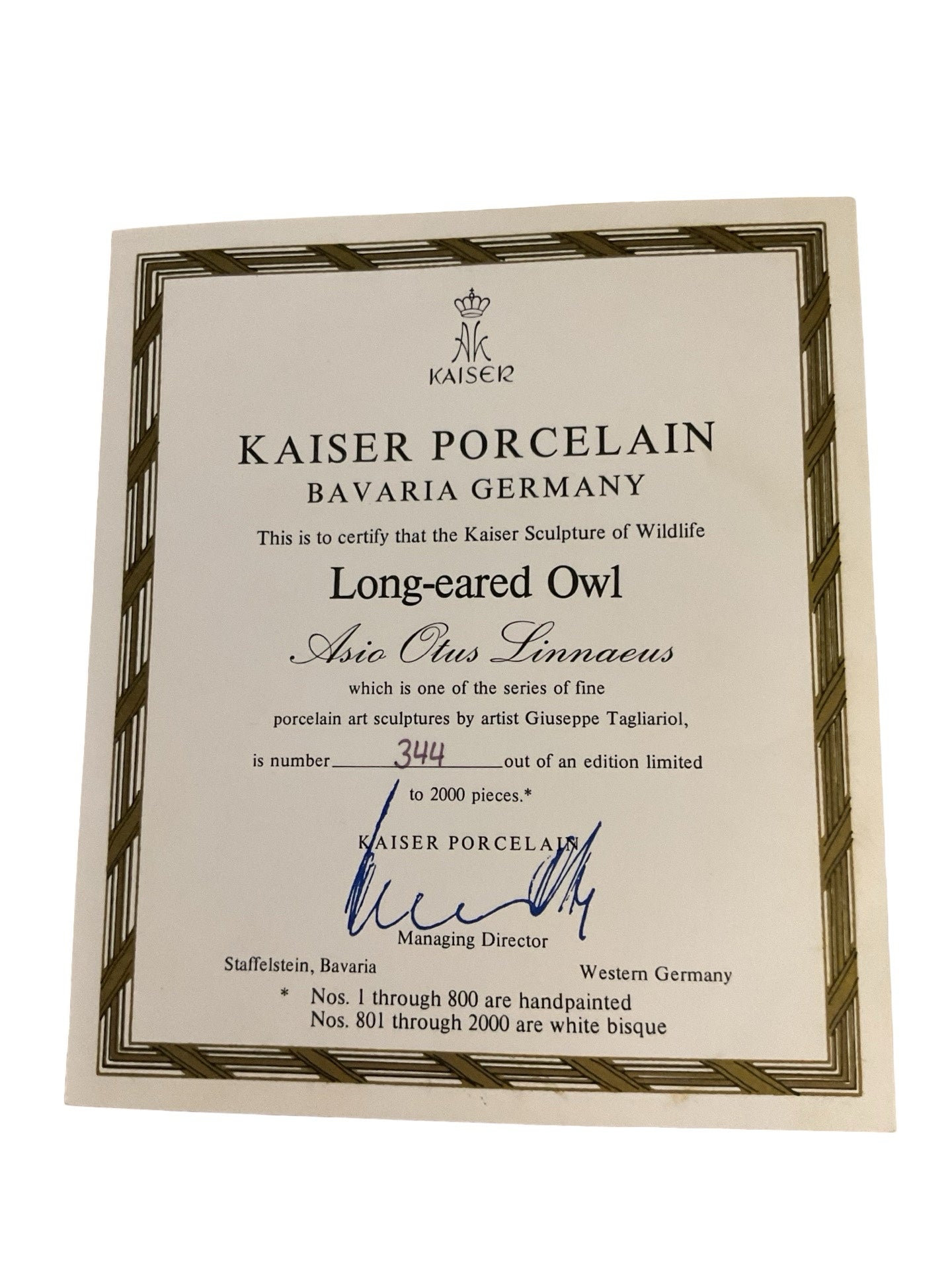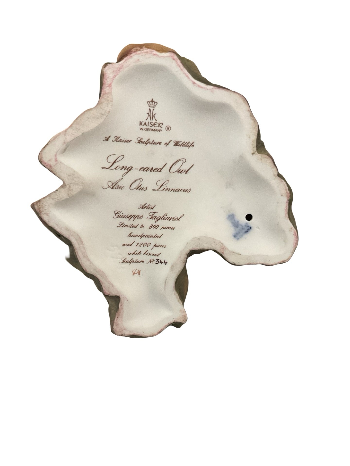 Sculpture on Wooden Stand Kaiser Germany Asio Otus Linnaeus Long-eared Owl with certificate #344 of 2000