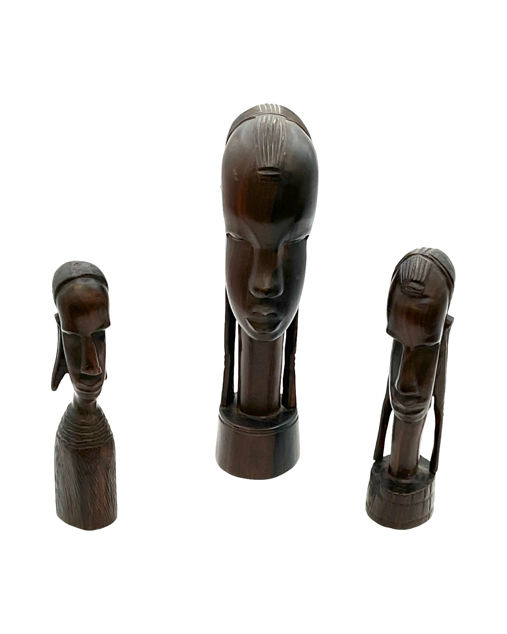 Set of 3 Sculptures wooden busts hand carved