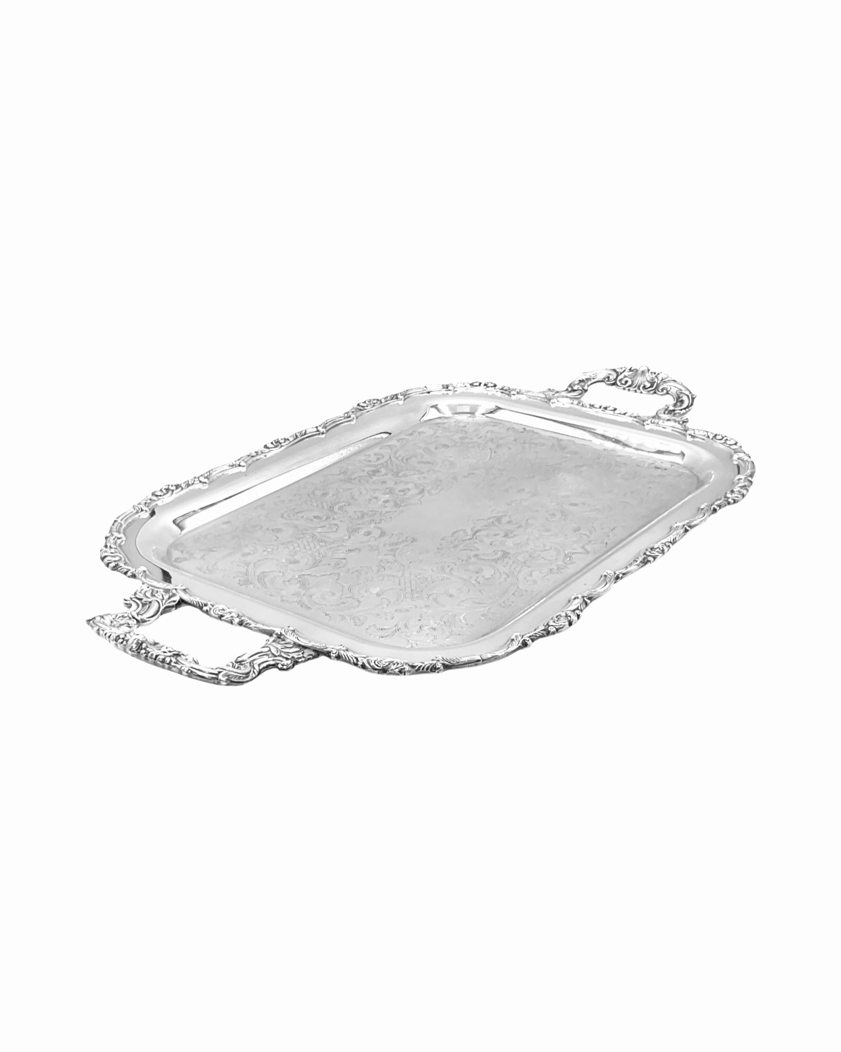 Serving Tray with 2 Handles rectangle silver plate floral edge with etched detailing