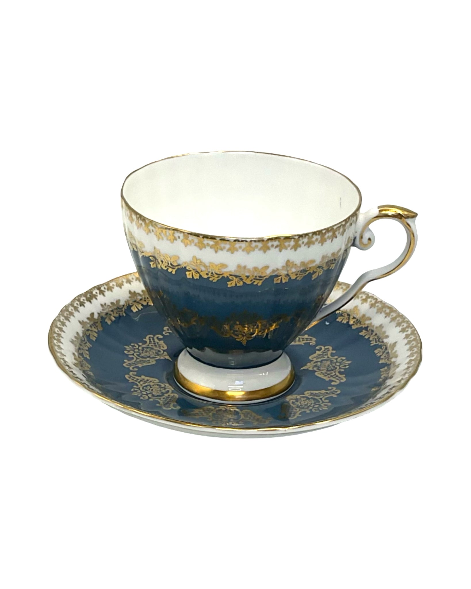 Tea Cup and Saucer Royal Grafton blue & white with gold detailing