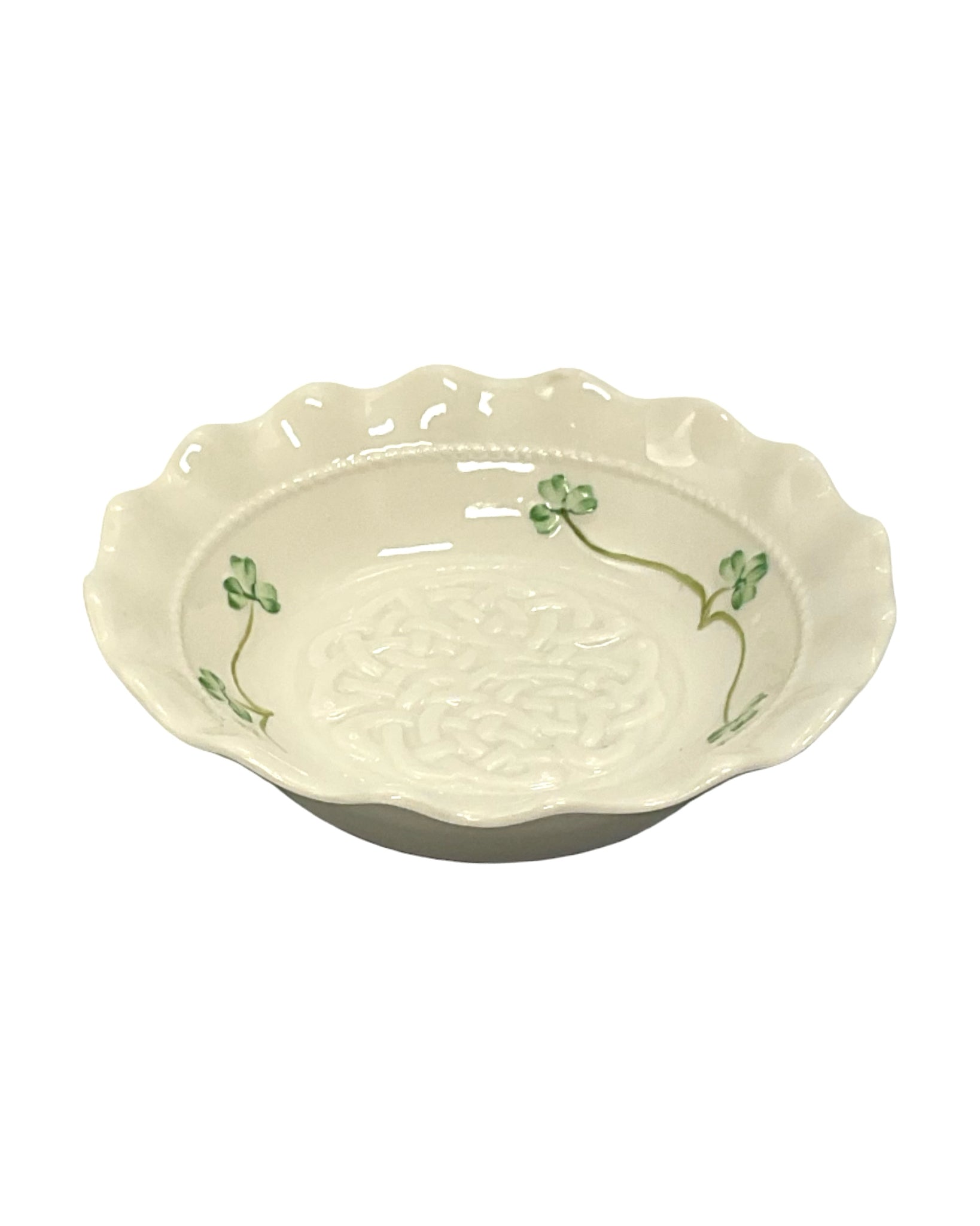 Decorative Dish Beleek Ireland porcelain cream with clover leaf detailing