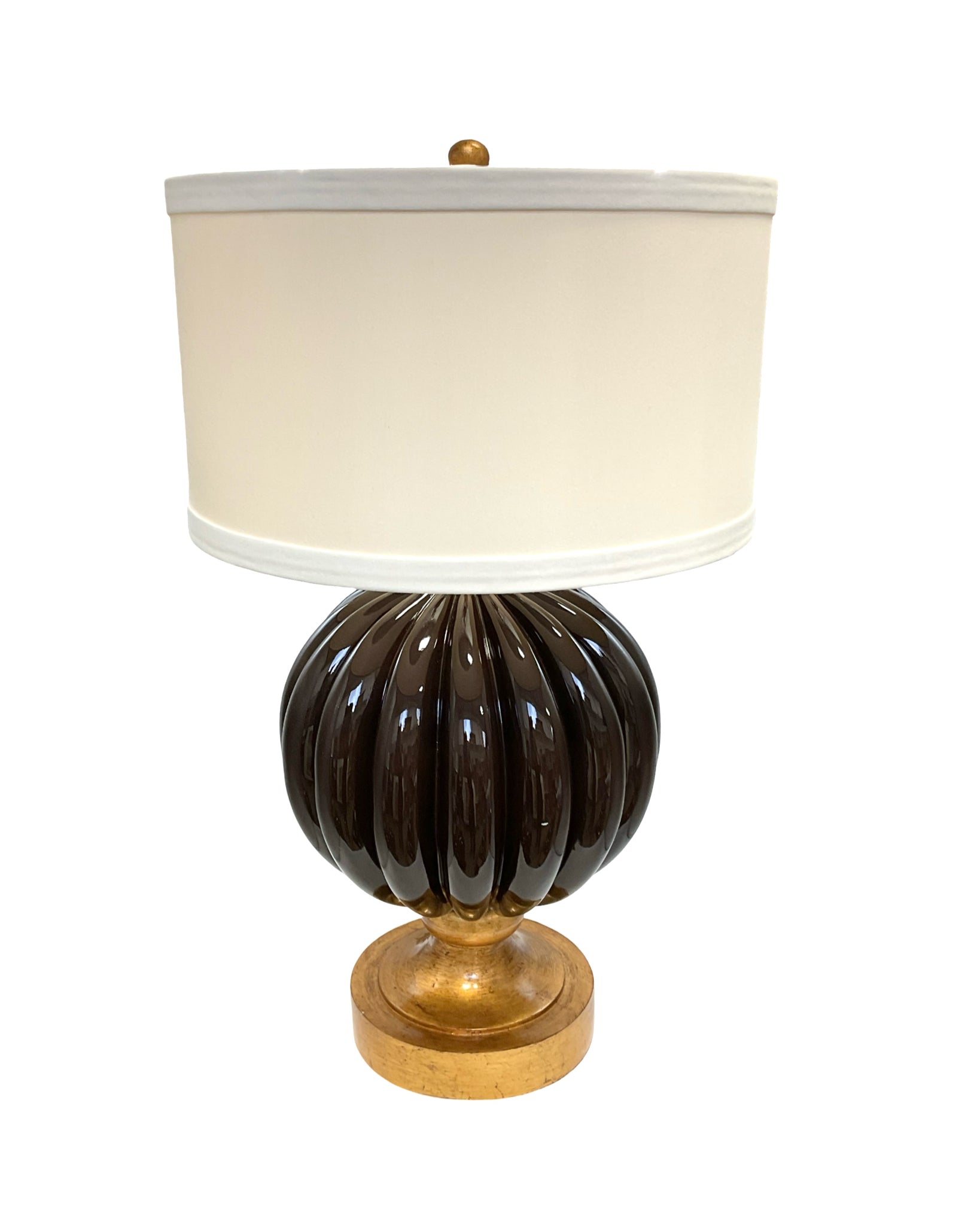 Table Lamp Wildwood brown & gold tone base with round taupe shade