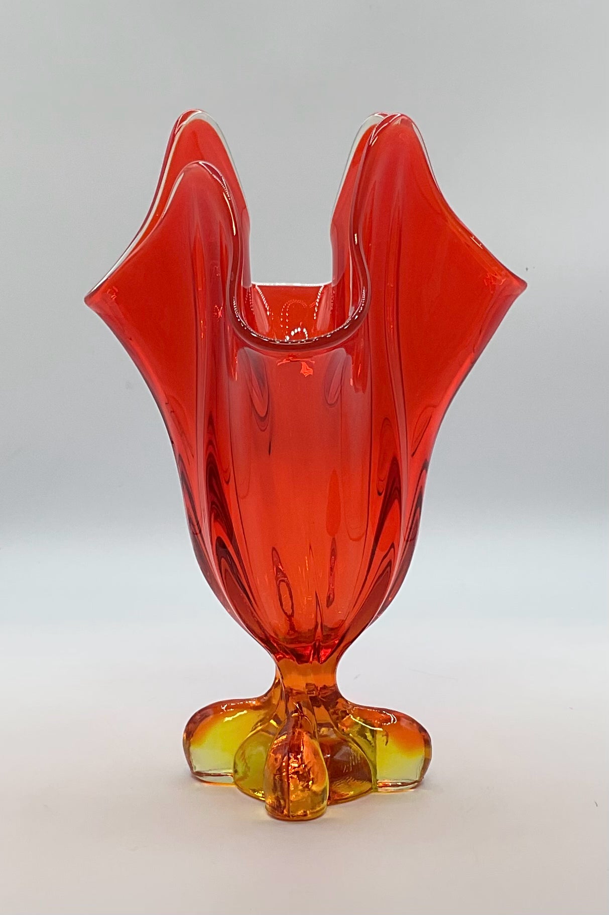 MCM Footed Vase Viking Glass red & orange with a ruffled top