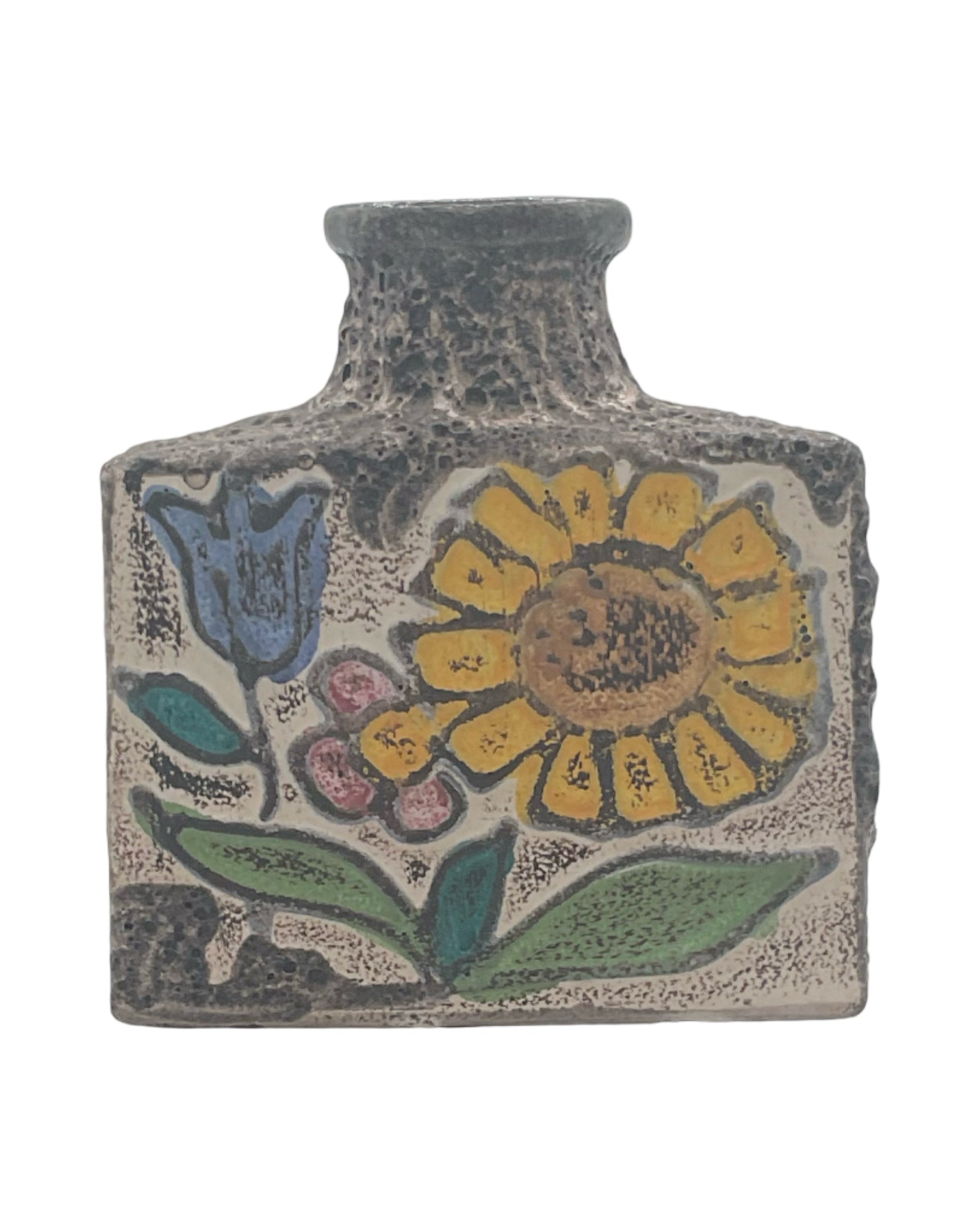 Vinatge Vase Scheurich Fat Lava W Germany pottery brown with flower motif