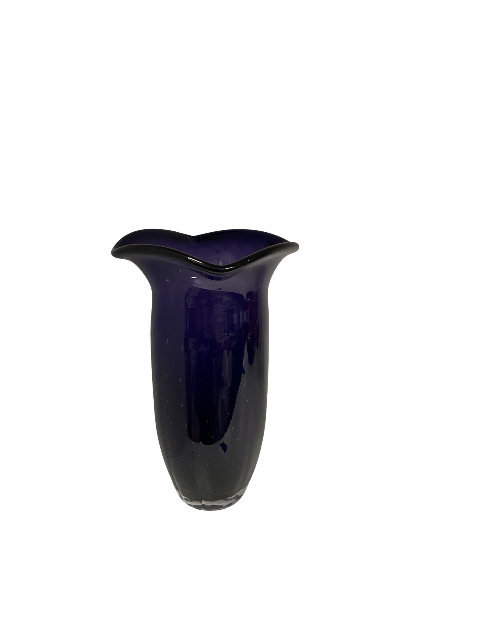 Vase art glass hand blown purple with bubbles