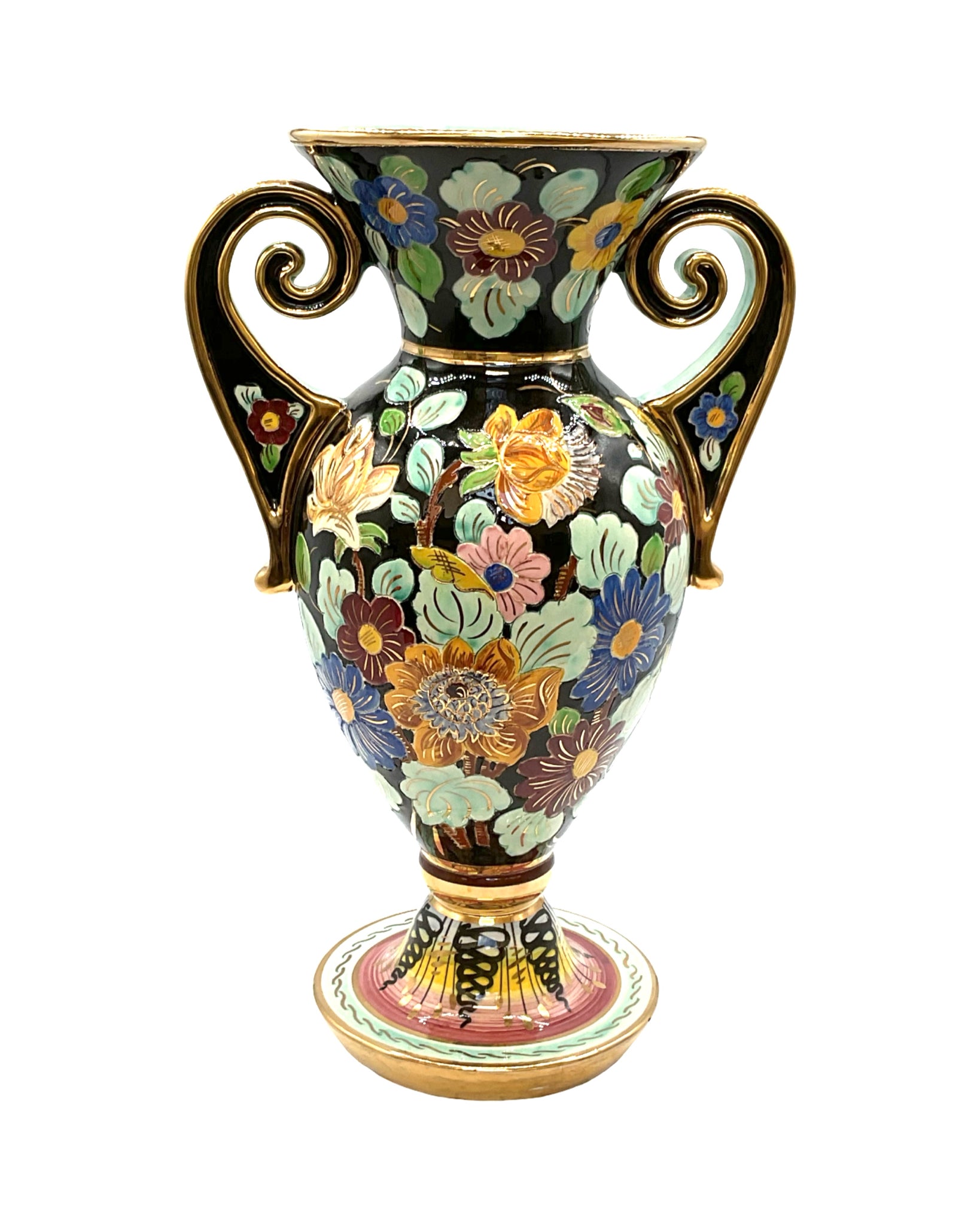 Vase with 2 Handles Cerdazur Monaco floral with gold detailing