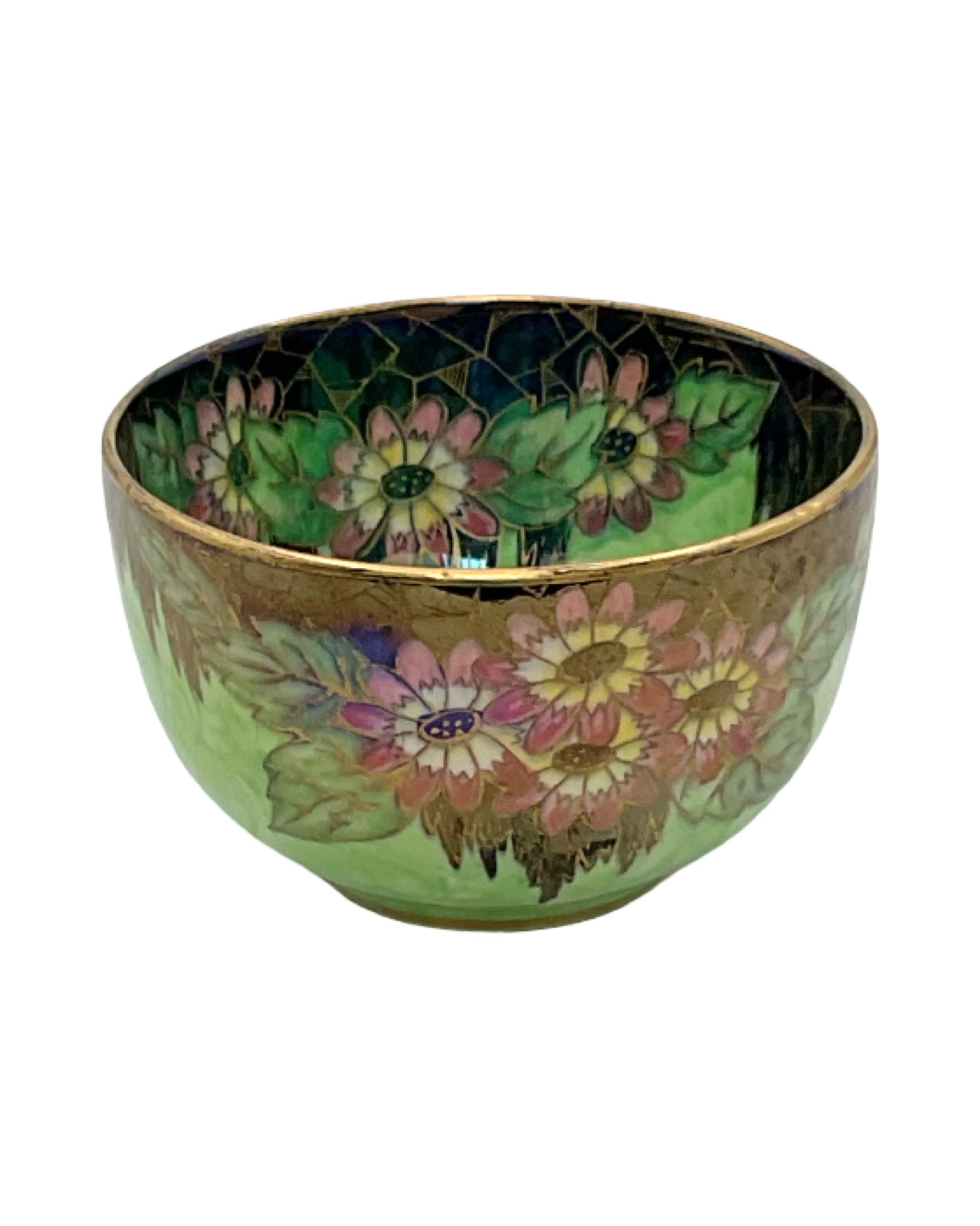 Antique Miniature Decorative Bowl Maling green & floral with gold detailing