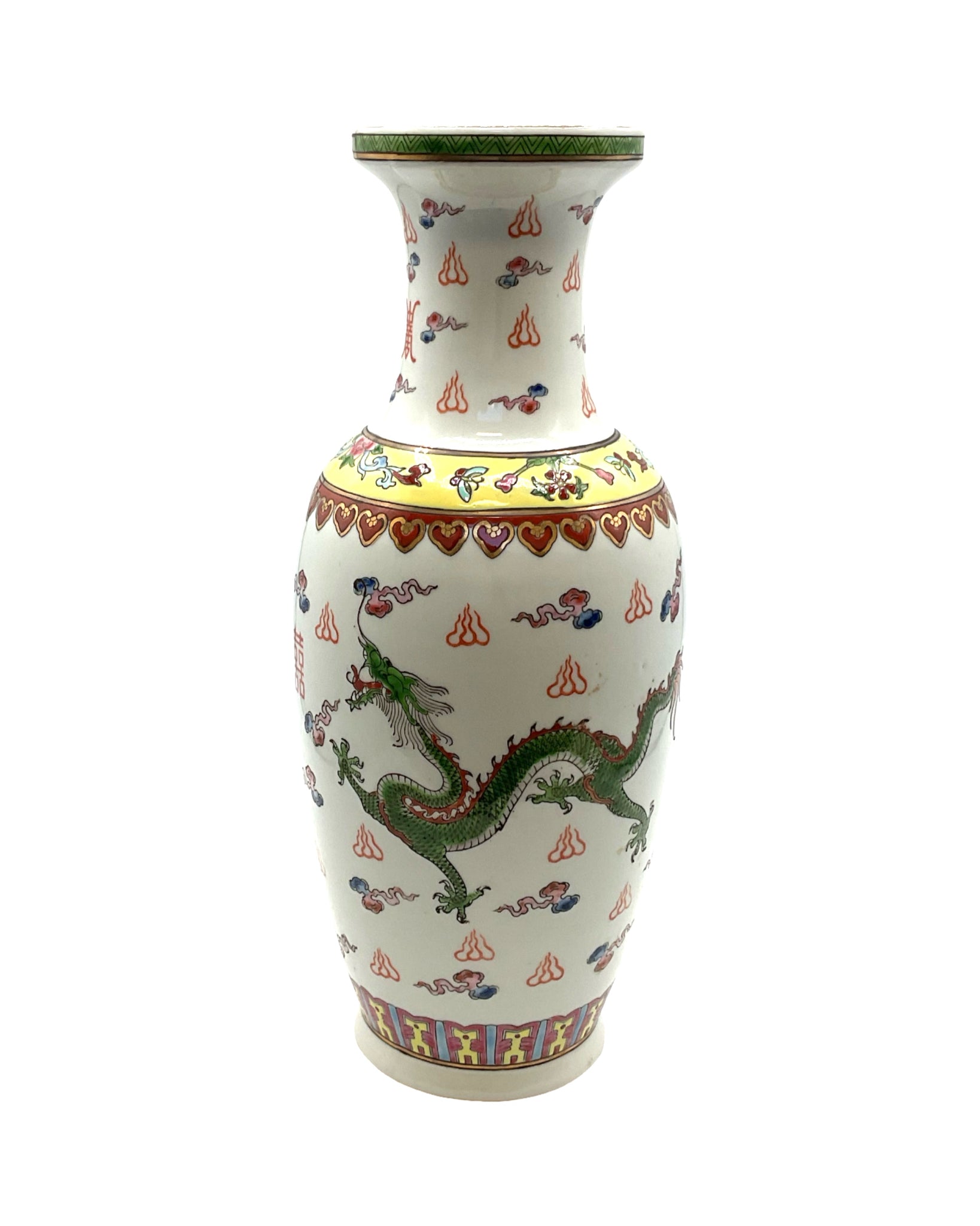Set of 2 Vases Asian motif white with dragons and multi color detailing