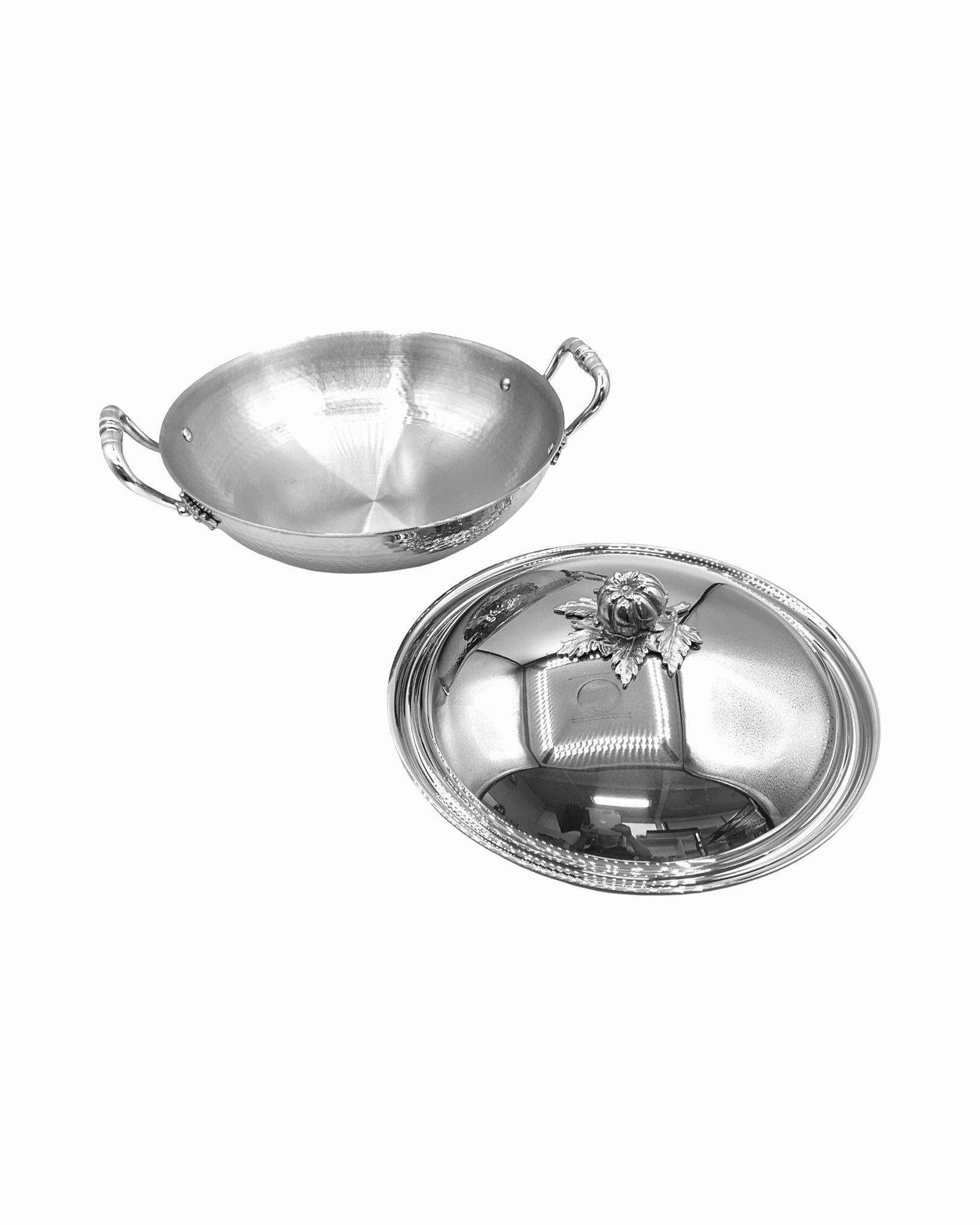 Ruffoni Opus Prima Hammered Stainless-Steel Wok with Tomato Knob
