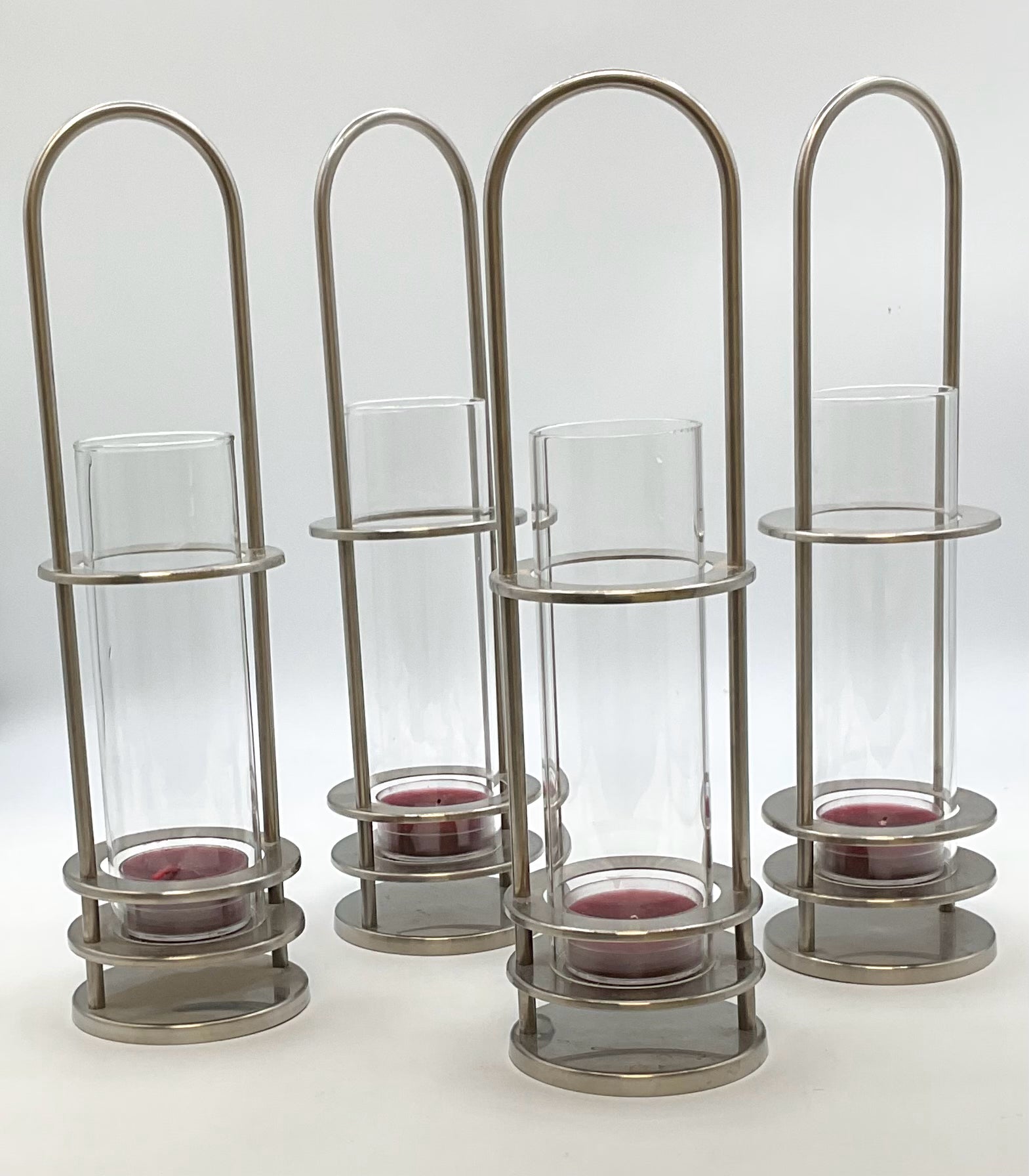 Set of 4 Tealight Holders with Handles The Nature Company Kosmos Danmark stainless steel with glass inserts