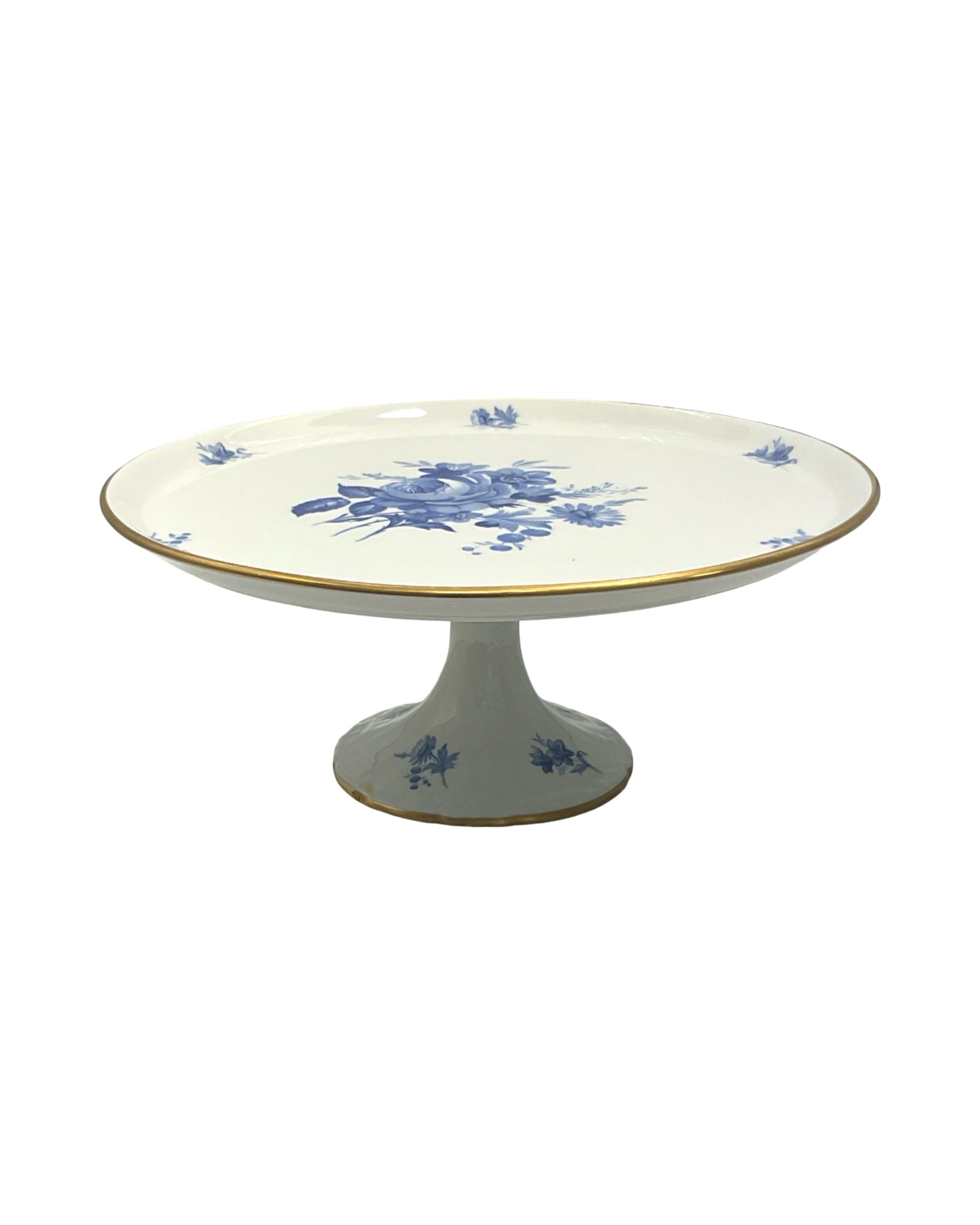 Cake Sweet Pedestal Plate Porcelaine de France porcelain hand painted white with blue flowers & gold detailing