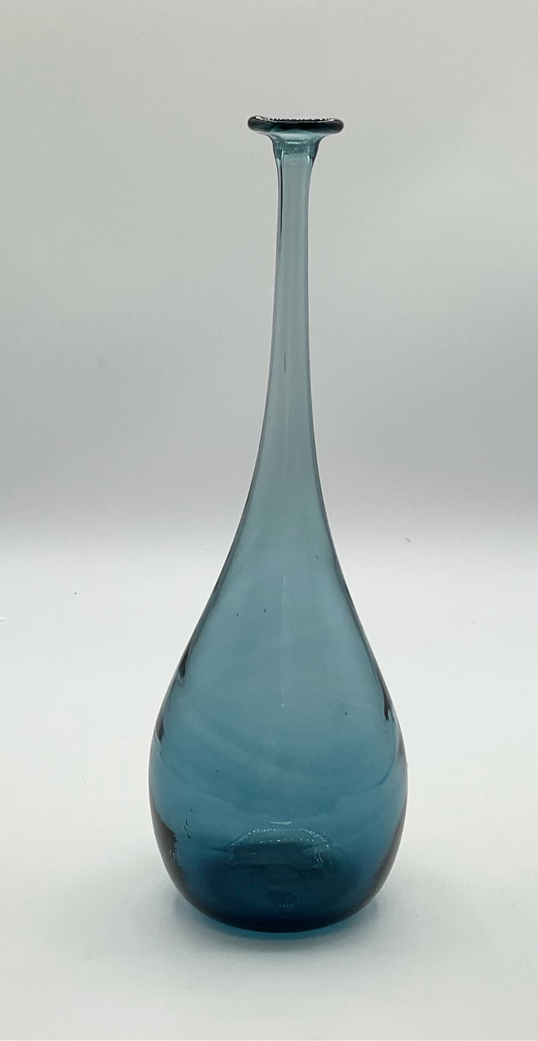 Vintage Long Neck Vase La Mailloche Quebec blue art glass